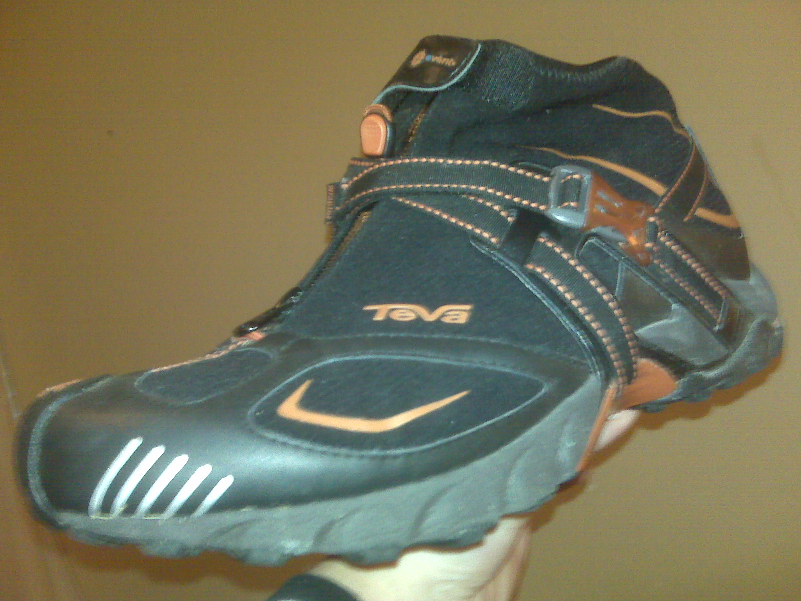 Teva Wraptors. They are very comfortable and, in addition to fantastic ankle support, are completely waterproof while remaining breathable. In addition to some sandals (not purchased yet) these will be our best friends.
