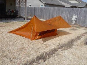 We applied sealant to the inside seams and the areas where the walking poles provide our frame height. Now we let it sit to dry and will try to pack it up later. Let’s see if we can get it back in that little bag…
