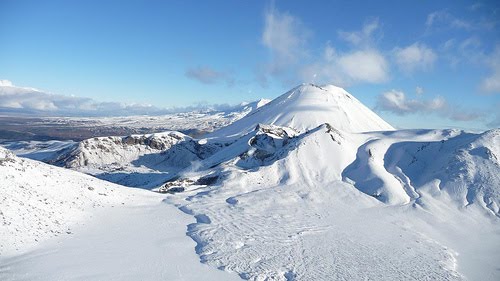 It was our first time in a chopper. It was also breathtaking. I was worried about getting sick, but I needn’t have. It was smooth and the day had cleared beautifully. We took a tour of some of the thermal areas and farmland before going to the mountains. There are pictures on the Flickr site; my words cannot do justice. It was an amazing experience and, although expensive, I wouldn’t have traded it for anything. We even landed in the mountains for a few minutes. It was -12 C! Bloody cold, I believe, is the local designation for that temperature. On the way back to town, we zoomed through a river area and got to see Taupo from the air.