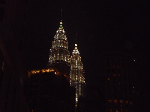 Once we landed, everything was new again. Although it was only a two hour flight, it felt like another world. Yes, it’s still Southeast Asia, but Malaysia is a lot smaller than Indonesia. There is also a bit more wealth here, and so far it’s felt a lot more like NZ than Indo. The airport is an hour outside of town and we had a nice ride in with a personal shuttle. The driver spoke decent English and talked all about the country on the way in. There were many empty housing editions along the zillion-lane highway due to the recession. Once KL showed up on the horizon, I was amazed yet again. It’s a beautiful city jeweled by the Patronus Towers, two spires that were once the tallest buildings in the world. We checked into our little hotel and went for a walk.