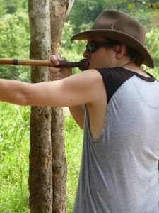 The Orang Asli live in scattered villages throughout the country. They are modern, not tribal, and one of the guides estimated that in another 10-15 years their system of villages, language, and ancenstral knowledge will be completely gone. This is due to the children all attending school, becoming educated, and moving to cities. The elders still retain the knowledge of their heritage, though, and we got to see and use one of their weapons: the blowpipe.
