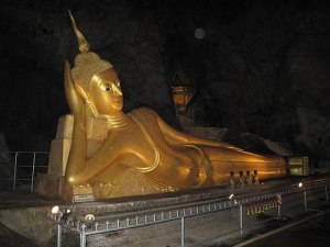 We arrived at the Suwankuha Temple before I realized it (an hour of Dramamine-induced daze will do that to you) and got out. The grounds were indeed overrun with Macaque monkeys, similar to the ones I saw in Ubud, Indonesia…only they were much less shy. And the ones in Ubud weren’t shy. I walked into the cave (past a dour looking local, taking 20 baht entrance fees) and was greeted by the most Buddha statues I’d ever seen in one place, including an enormous reclining Buddha. The cave wasn’t that deep, and I saw it all in about ten minutes. The rest of my time I spent admiring the temple outside and watching the others get overrun by monkeys as they tried to feed them with the small banana bunches for sale. Often times, the monkeys would gang up and/or drop from trees to take the whole bunch at once.