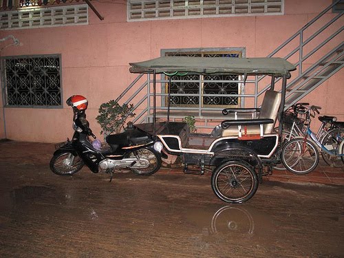 Interesting note: the Tuk-Tuk evolution here odd. Instead of being a motorbike-with-sidecar or a three-wheeled motorized vehicle, they use motorbikes in place of a horse in a drawn-carriage style design. Check it out: