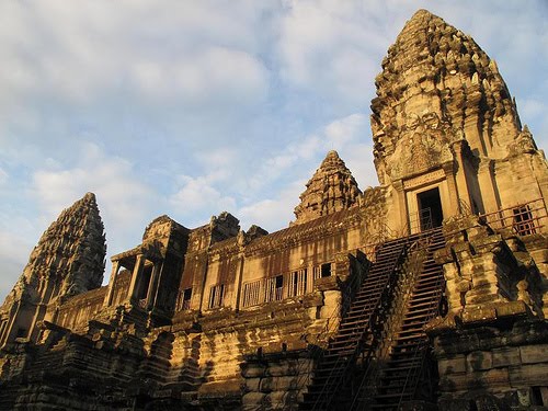 One of the main reasons Indi and I were excited about coming to Cambodia lies just outside of Siem Reap in a large temple complex known as Angkor Wat. Built between the 9th and 13th centuries (it’s a huge complex) to honor a variety of gods, the name ‘Angkor Wat’ is often used to refer to the entire complex, but in actuality it’s only one small part. ‘Small’ is an odd word, as the Angkor Wat itself is gigantic. Some say it was built as a recreation of the layout of the universe itself, while other point to it as a symbolic trip through Hindu creation. It was primarily built to honor the god Vishnu and is recognized as the largest religious building in the entire world.