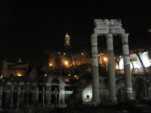 We walked from there to the Trajan Forum, which is little more than a collection of incomplete columns now. Indi seemed to know much more about it than I did, and I’d been here before! Though there was some resoration going on (as always) we got to see a good bit of it and even touch some of the ancient masonry. Across the street from that is the Roman Forum of Peace, where the Roman Senate once stood. Again, this part is little more than rubble and columns, but a little imagination really fleshes it out and you can imagine what life was like back then. There are even bits of an ancient map (carved out of stone) of the city and a small display explains how intricately planned and maintained Rome was back in the day. I had no idea they had an urban planning department. Can you imagine how many cabinets of papyrus they had?