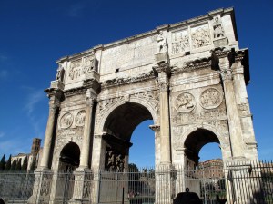 At the end of the street is the grand ruin itself, the Roman Colosseum. It’s so strange to see such a familiar sight in real life when you’ve seen it in other media your entire life. It’s like it’s not real. It looks exactly like I remember it, which is a good thing I suppose. Indi pointed out that the Colosseum contains all three types of columns, which once again proves she is much smarter than I am. The Arch of Constantine is right next to it, and it is fenced off now…yet I don’t recall that fence last time. It’s hard to believe how long this stuff has been here. Angkor Wat in Cambodia was breathtaking and amazing, but they were built as temples. This stuff was actually used daily for normal urban needs. They sure don’t make ’em like they used to. Thankfully, there were less tourists than I expected, but that’s wintertime for you. At least we had a clear blue sky!