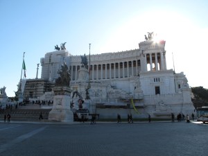 Our first stop was a small collection of ruins near the last tram stop on our line, Argentina. I didn’t think much of it at the time, aside from the fact it was littered (ha!) with cats. After reading a bit, I realized it was the area where Julius Caesar was killed and where famous operas like ‘Barber of Seville’ saw their debut. Hmm. Not far from there we came across the grand Piazza Venezia and the enormous Monument to Vittorio Emanuele II. My second favorite building in Rome. It contains the Eternal Flame of the Unknown Soldier and acts as the starting (or ending) point for the most famous set of tourist attractions in the area. When it was built, it was considered an eyesore due to the enormity of the monument and the fact it destroyed an entire hill.