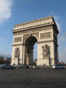 The desk man was kind enough to allow us to deposit our big backpacks and we decided to do some exploring while we had time/fake energy. We took the metro subway to the two attractions we knew we wanted to see: The Arc de Triompe and the Eiffel Tower. It was bitterly cold, but the sights were totally worth it. The Arc was nice, a bit more spartan than the Arch of Constantine in Rome, and is the center of a roundabout. We didn’t stand around long, because really…it’s a huge arch. Not a lot of mileage you can get out of it.
