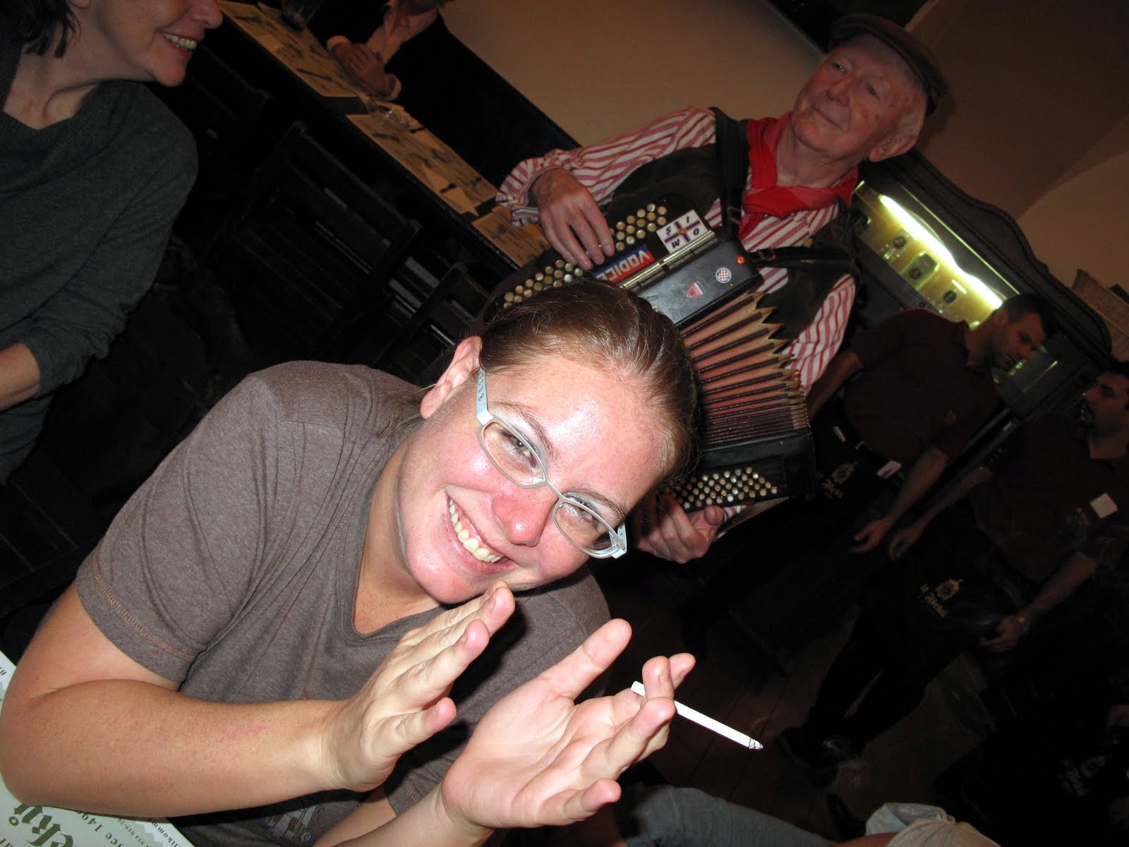 The next few hours were a flurry of conversation and beer. The Globe is more popular than we anticipated, and we were joined by several people over the course of our stay. Dan, one of the other partygoers from Christmas stopped by for a little while (even though he’d left just ten minutes prior to our arrival, he came back to learn more about our journey.) We were introduced to Elizabeth and Brett, the former being an English teacher here and the latter being a visiting boyfriend from the States. After much frivolity, some surprisingly accurate nachos, and absinth by some, we relocated to a restaurant on our street that we’d never been to.