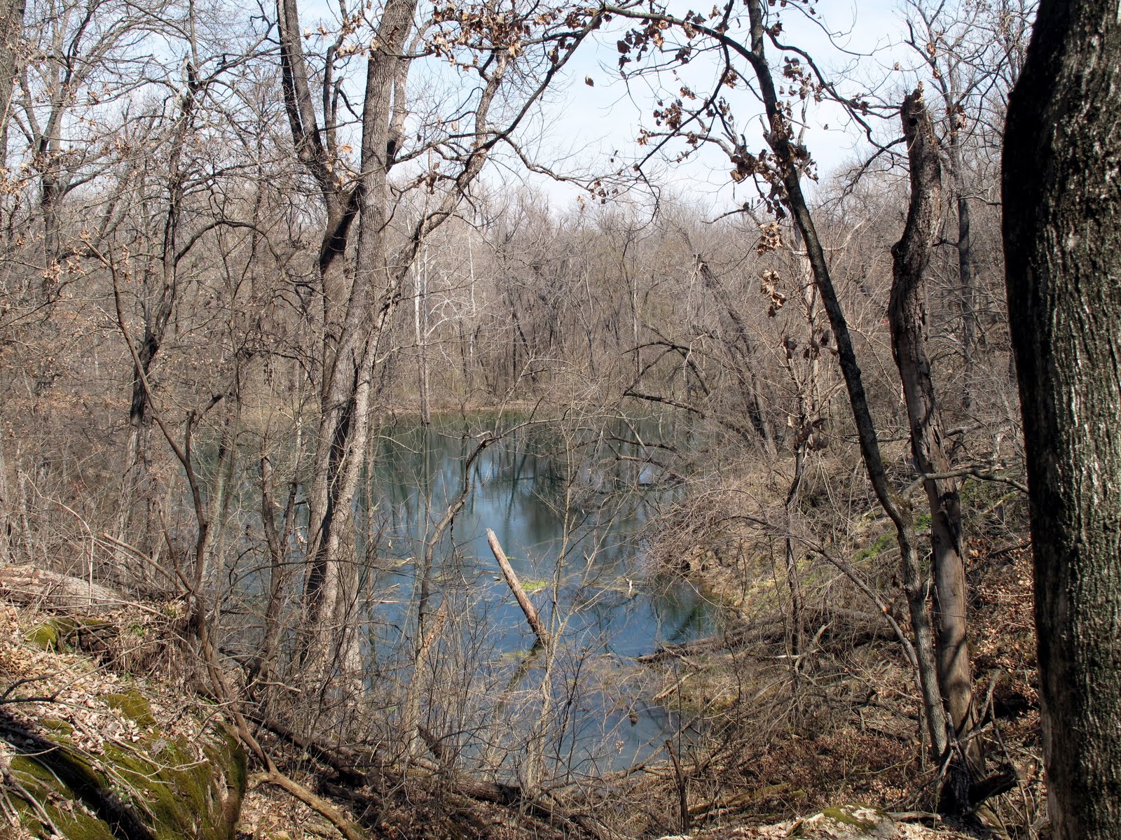 We got to a bench and sat for a little bit. Below us was a river. Above us was sky. Around us were trees just starting to think about blooming. My ears were filled with silence; the birds have not returned to Green Country yet. The landscape was a monotone selection of browns and tans; the occasional lone evergreen stood out like a sore thumb. When we started walking again, we found ourselves navigating around some modest rock formations. When we finally snaked around back to the parking lot, only 45 minutes had passed.