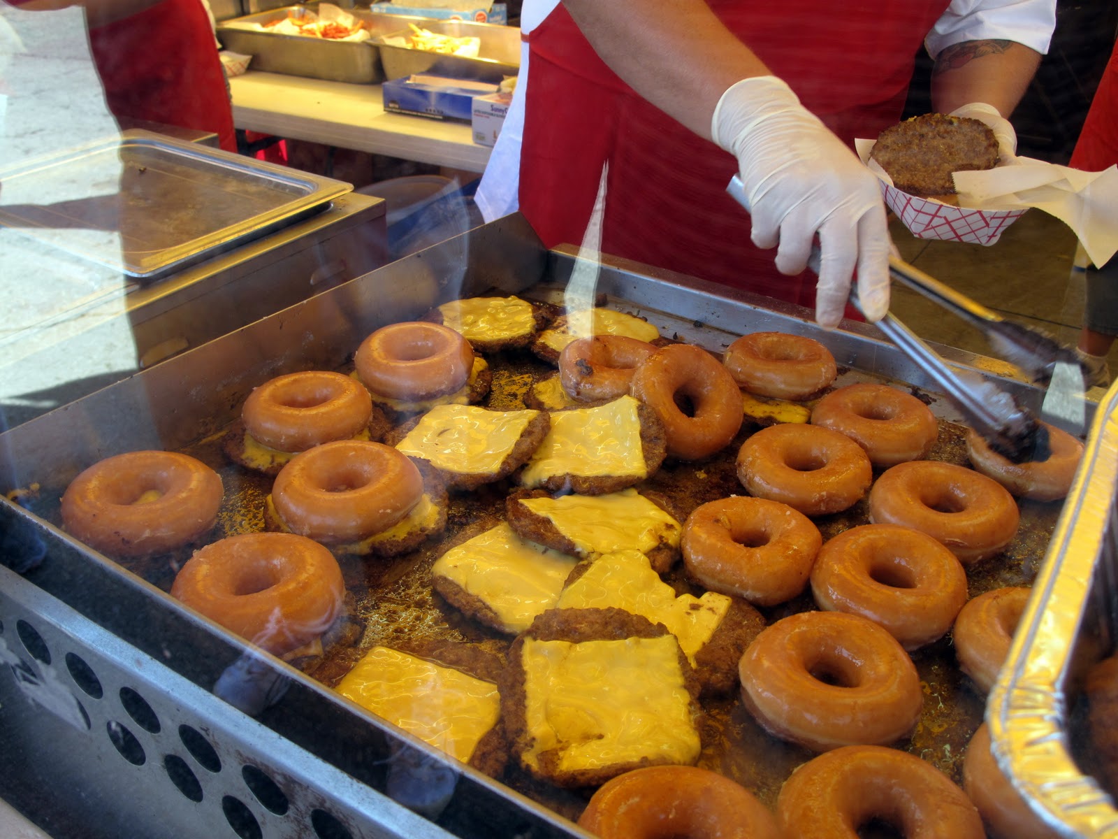 Yes, those are cheeseburgers that use Krispy Kreme glazed donuts as the bun. No, I did not try one. Although perhaps I should have, for posterity’s sake. No, who am I kidding. I would’ve gone into cardiac arrest right on the spot.