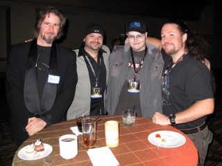 While the other groups had parties and gathering to attend, I straightened my vest and headed to a ballroom at the Hilton to take part in the charity dinner that I had the opportunity to attend. I went in at 6:00, got my name badge, and walked into a grand room with scattered tables. There was an open bar and tons of food. I wandered briefly before noticing some of the folks didn’t have name badges like mine, but sticky name tags. These folks worked for Blizzard. I spent the next four hours chatting with Blizzard employees, from game designers to artists to producers to composers to developers to founders. I didn’t know anyone’s face or name, and I stood back for a bit. One of the Blizzfolk came over and introduced himself as Brom. In addition to looking a heck of a lot like Jeff Bridges, I learned that Brom was a graphic artist and he introduced me a group of his artist and designer friends.
