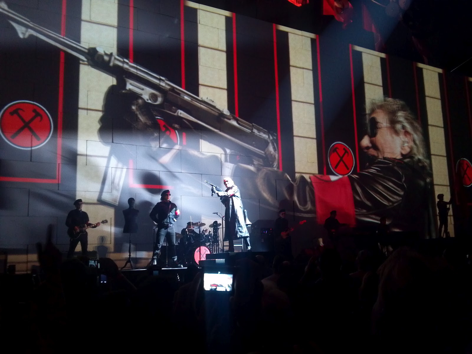 Shortly thereafter, the lights went down and the show started. What followed was several hours of bombastic spectacle that I’d only read about. Roger had a stage presence unlike anyone else and the scope of The Wall became evident quickly. A song written about a boy whose father had died in WWII and coping with separation from loved ones/society worked in any time; pictures of veterans and civilians that had died as victims of warfare. Giant inflatable creatures represented authority figures and a lack of trust in government showed up in lyrics and projected Wall graffiti alike. It was nearly overwhelming; my earlier emotion was recalled throughout the presentation of this larger-than-life rock opera.