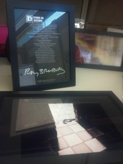 I found a mention of her sadness at Ray Bradbury passing. A quick Google search turned up what would be her main gift: a copy of the poem ‘Doing is Being’ by Ray Bradbury. I felt the message was very appropriate for an event like Arbitrary Day: the true blood of life comes from activity and giving of one’s self. Not only that, but this particular item was the first printing of the poem, distributed on April 9, 1980 for Walt Disney Imagineering. And it had his signature on it. It was perfect and fit into my budget, surprisingly.