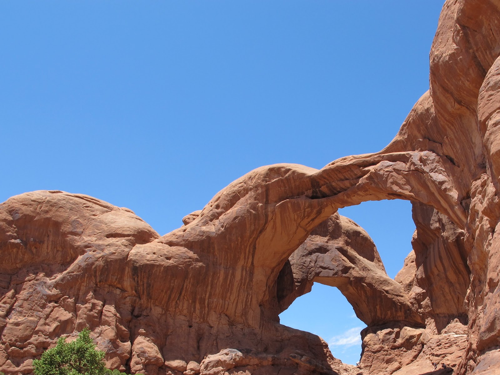 When we arrived at the Double Arches, I immediately suspected this would be my favorite spot in the park. Not only is it an amazing rock formation, beautiful in color and shape, but it was also used in the filming of ‘Indiana Jones and the Last Crusade’. I already had a picture outside of the ‘library’ in Venice from the film, and I became giddy at this unexpected opportunity. I gleefully set up my picture before going to the arches themselves. I even climbed up to the highest point inside the arches, triumphant in another small victory over my fear of heights. I enjoyed a few minutes of glory before realizing I now had to figure out how to get DOWN. I made it, but not without some muttering and anxiety. Such is life.