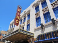 Some time back, I read an article that named 50 of the most beautiful old movie theaters in the country. I made myself a map of them so that I could reference it any time I did some traveling. That’s how I discovered the Fox Theatre in Hutchinson, KS that I visited last Saturday. The same is true of the KiMo Theater in Albuquerque. After driving five-and-a-half hours, we arrived in town to find the theater. It was downtown, which was just a little ways off I-40, but the lovely GPS took us to a road that was completely closed due to construction. We weren’t the only people caught off-guard; the traffic snarl took about half an hour to get through before emerging on Central Ave, which is also Old Route 66.