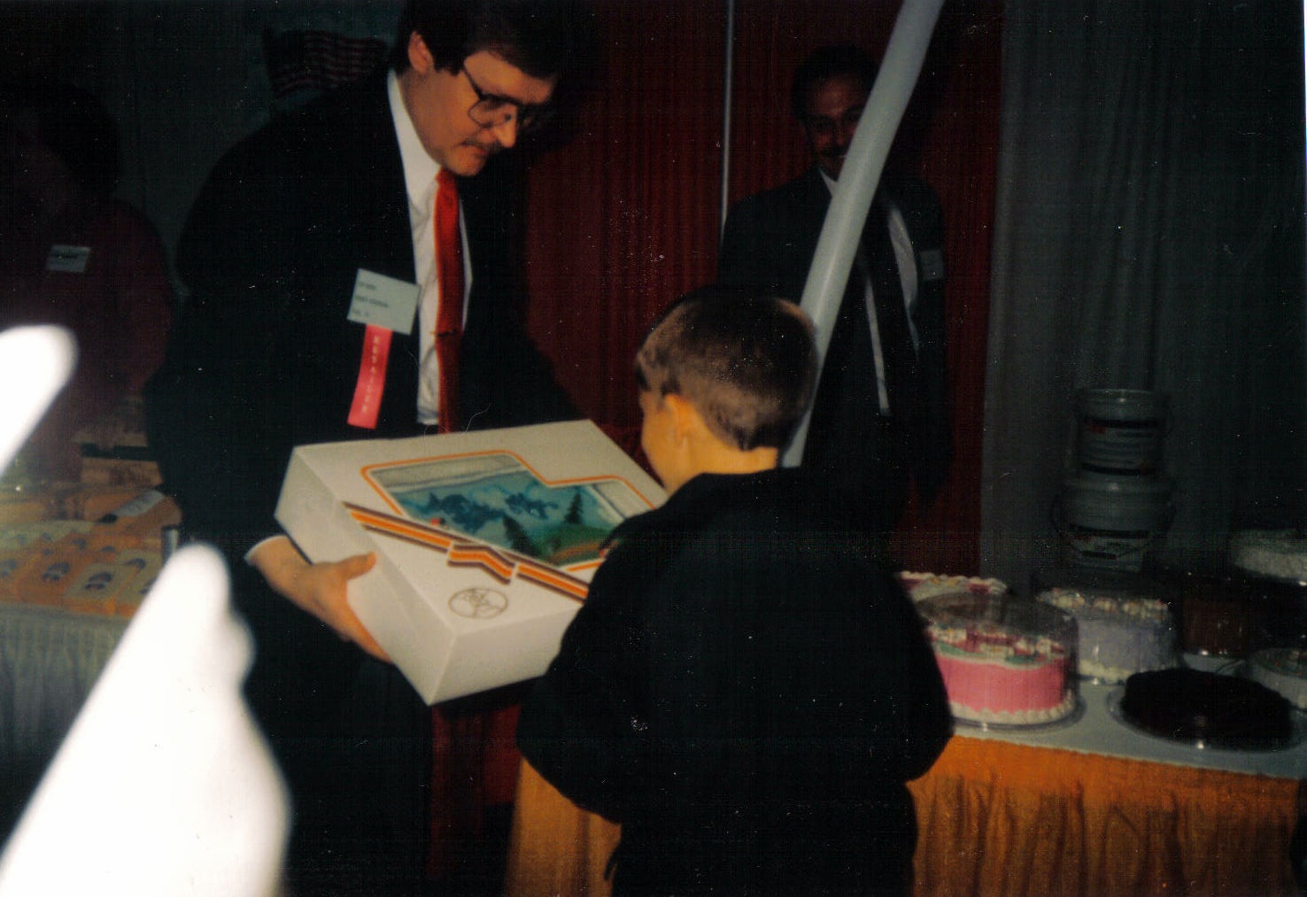 The happy memory I spoke of earlier also took place at a food show. I was wondering the lower level one year and was admiring some of the bakery counters when I noticed a big cake that said, ‘Happy Birthday Rhys’. I was stymied. How did one of these sample cakes have my name on it? I ran upstairs to find Dad. I pulled him downstairs to show him this cake that incredulously had my name on it. What were the odds that someone else named Rhys had a birthday on the same day? When we got there, though, I discovered the obvious truth: Dad had them make the cake for me. I was surprised and delighted.