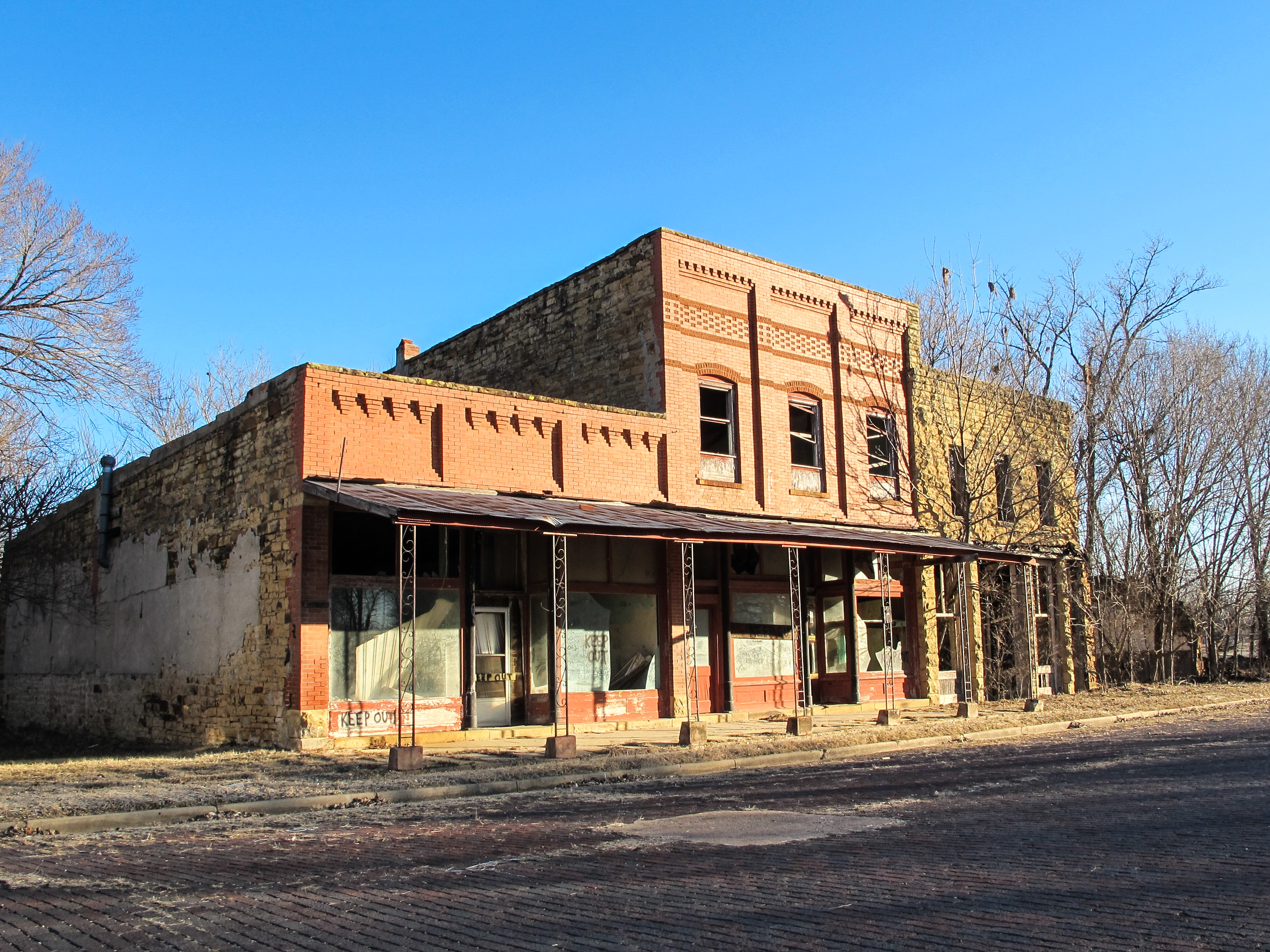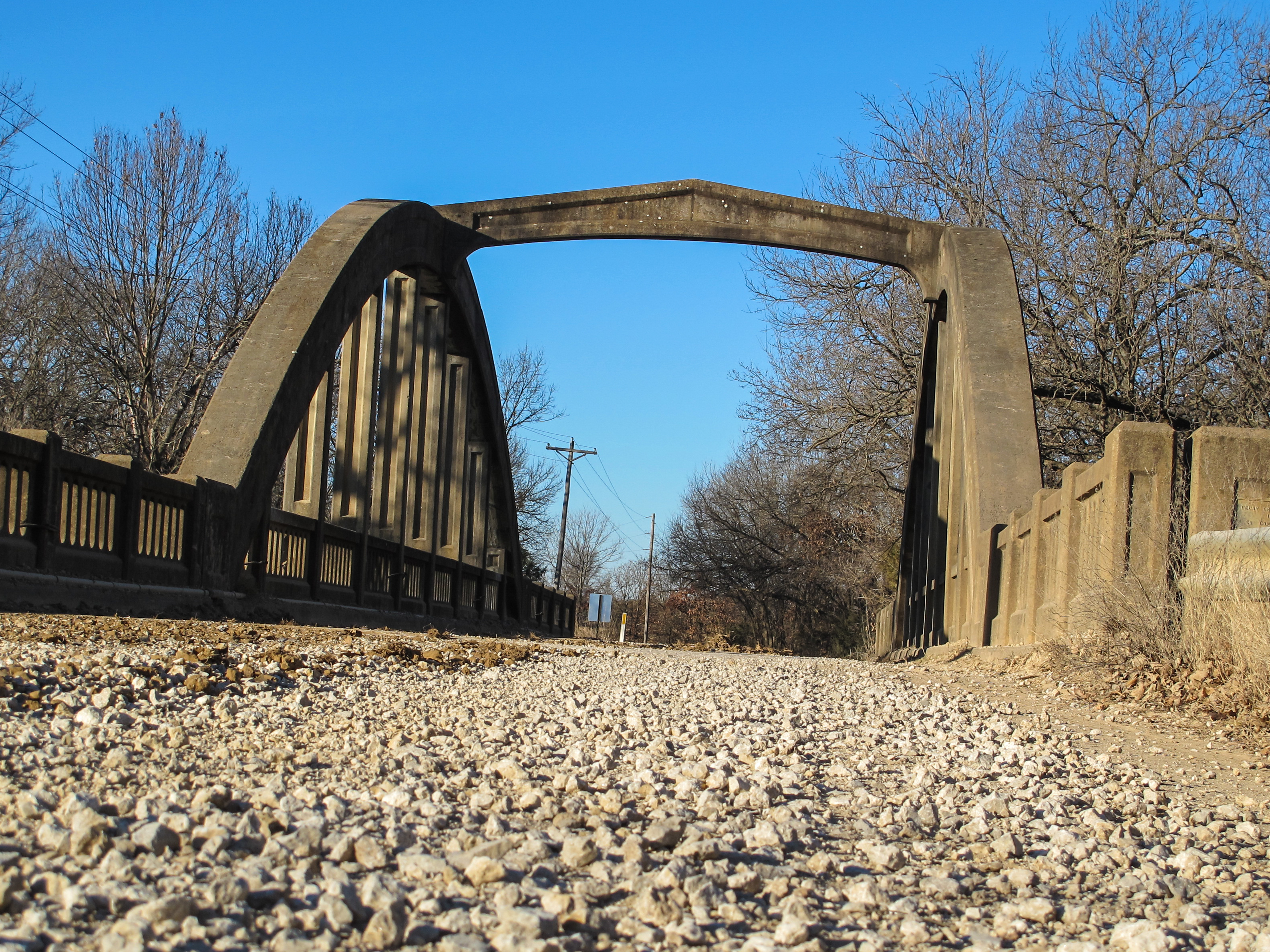 The downtown area had a small collection of buildings (all closed and in various states of collapse) and a brick road. You could tell where the railroad once was, too, after it had been paved over. It wasn’t too difficult to visualize a busier town, though I didn’t see a single soul during my visit. Before I moved on, I drove to the east edge of town and took some photos of a marsh arch bridge, which Kansas is full of and Oklahoma has only one. It was cool to visit a town that had both a concrete arch and a metal truss bridge, which is actually a rare sign in Kansas. It’s weird how something can be plentiful in one state, and pretty much non-existent in its neighbor.