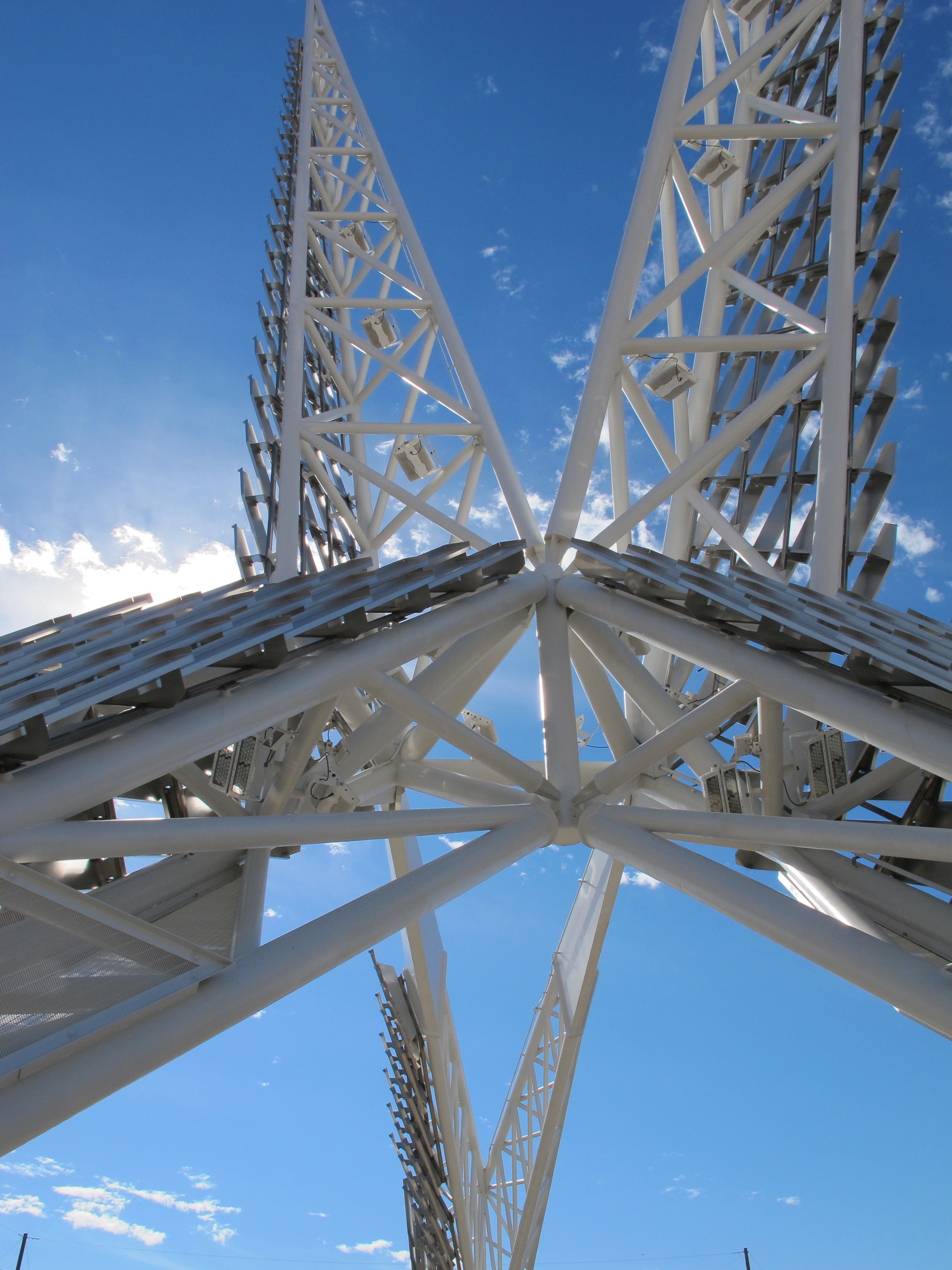 After eating, I also made good on another previously-bypassed place: the Skydance bridge. I can’t count the amount of times I’ve driven under the bridge, marveling at the steel spikes stabbing skyward. I hadn’t made the time to stop and actually appreciate it, and it seemed appropriate to add it to my list of stops, though being barely three years old it’s under no threat of demolition. The bridge itself is inspired by our state bird, the scissor-tailed flycatcher. It’s a beautiful construct, as magnificent from below as it had been from afar. I wondered if locals thought it was frivolous or ugly, as many do when something drastic like this is built. As I was walked back to the car, I made a note to myself to come back at night soon; it’s even more beautiful when it’s all lit up.