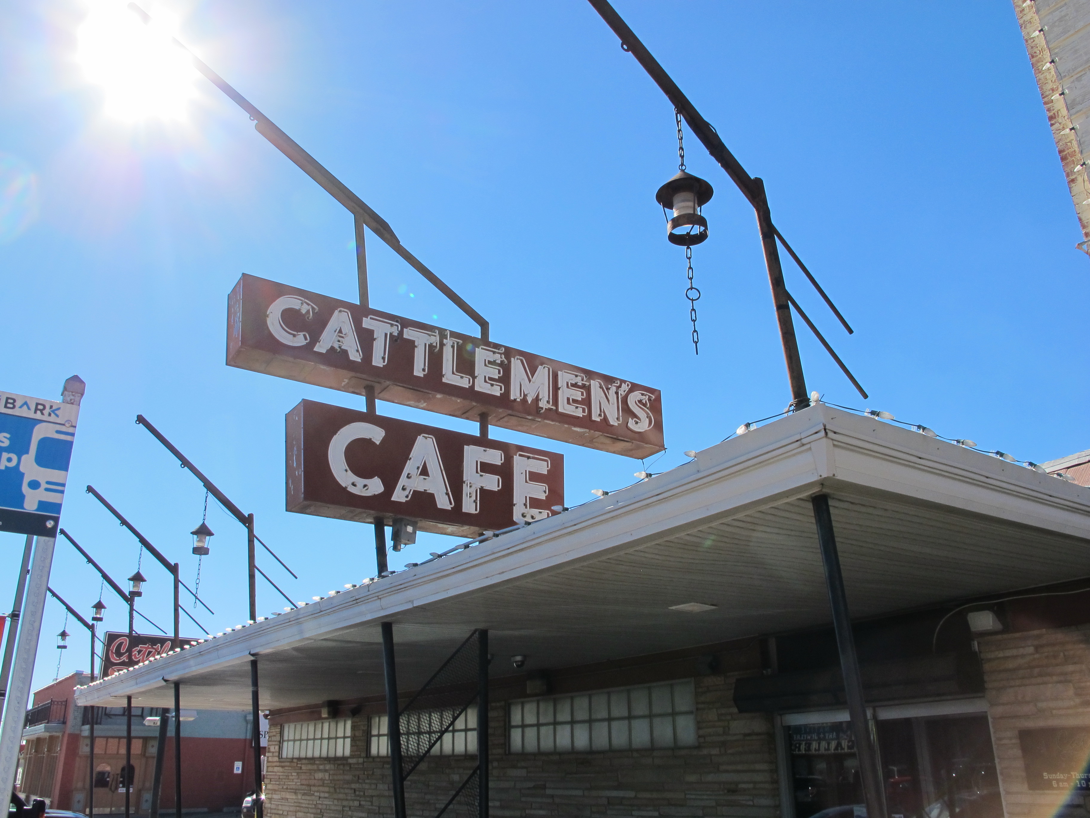 After our walk downtown, we were both pretty hungry. To continue the theme of the visit, we had lunch at a place I’d skipped several times before: Cattlemen’s Steakhouse. It has been recommended to me several times in the past, and I have to say I am now a fellow recommender. My steak was delicious and Sam was very pleased with her turkey and dressing. The restaurant has been around since 1910 in Stockyard City, a section of town that is known for meatpacking and livestock-related auctions and business. More of the restaurant’s history is here, which I enjoyed reading on their menu while eating their enormous dinner rolls. The decor inside is very classic: wood paneling, old newspaper clippings, low lighting. You can tell not much has changed in the last few decades. Old cowboys ate at the lunch counter in full regalia while the staff hurried about in good spirits. I’ll bet I could get some GREAT steak & eggs there at breakfast time!