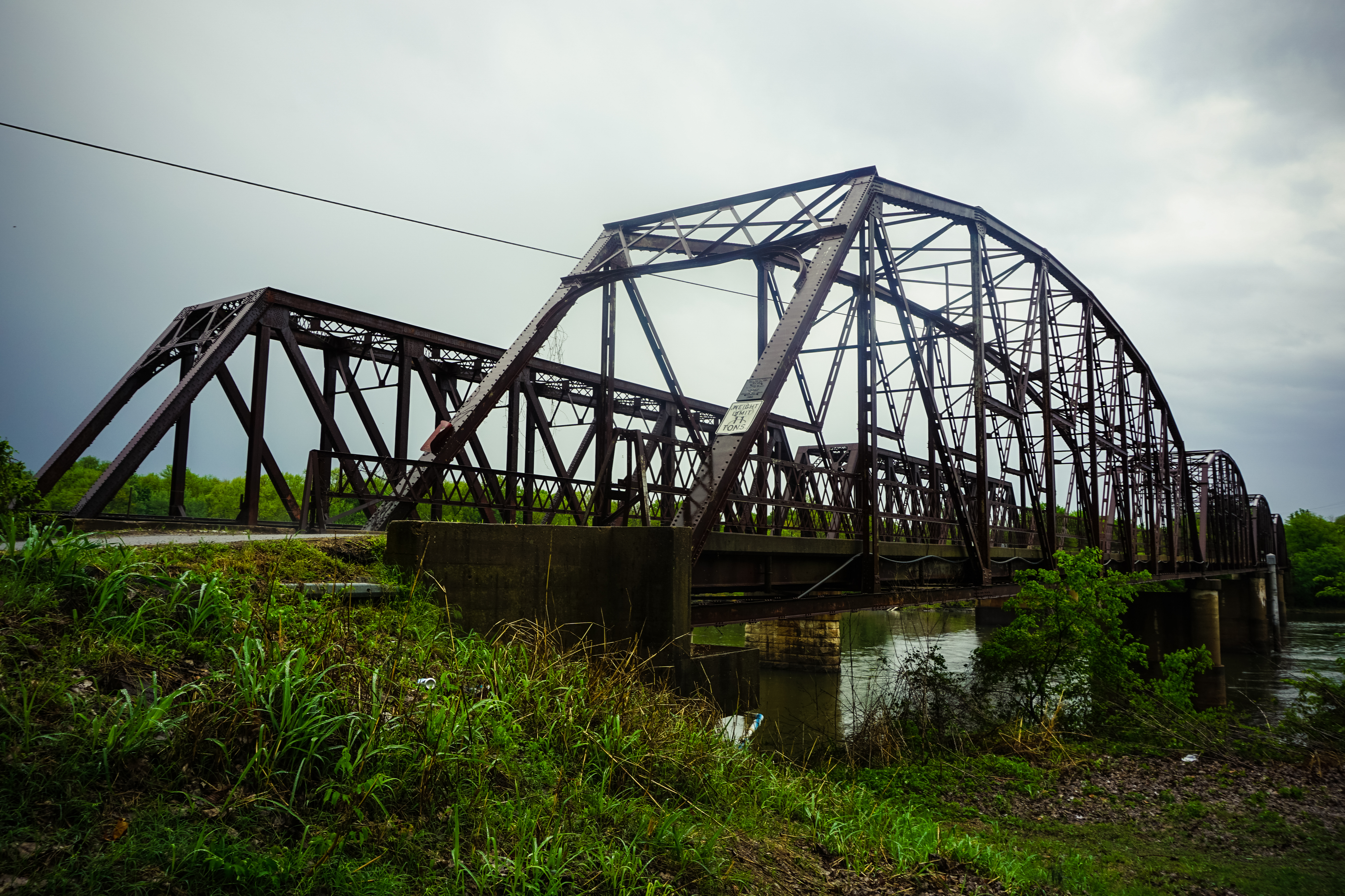 The clouds continued to darken and finally opened up on us about 20 miles outside of Tahlequah. It was like someone turned on a celestial faucet; suddenly it was an absolute downpour. When hail joined the torrential rain, I pulled over to wait it out. In classic Oklahoma thunderstorm fashion, it wrapped up within fifteen minutes or so; quick enough that I could actually stop in the nearby town of Fort Gibson for a few minutes and take some pictures of an old bridge that’d been on my map for months. As a bonus, the bridge I was hunting was RIGHT next to a similar railroad truss bridge. I love a good two-for-one! The pavement steamed from the cold rain as I watched the Grand River flow by underneath me for a few minutes, reveling in the peace that follows a good storm.