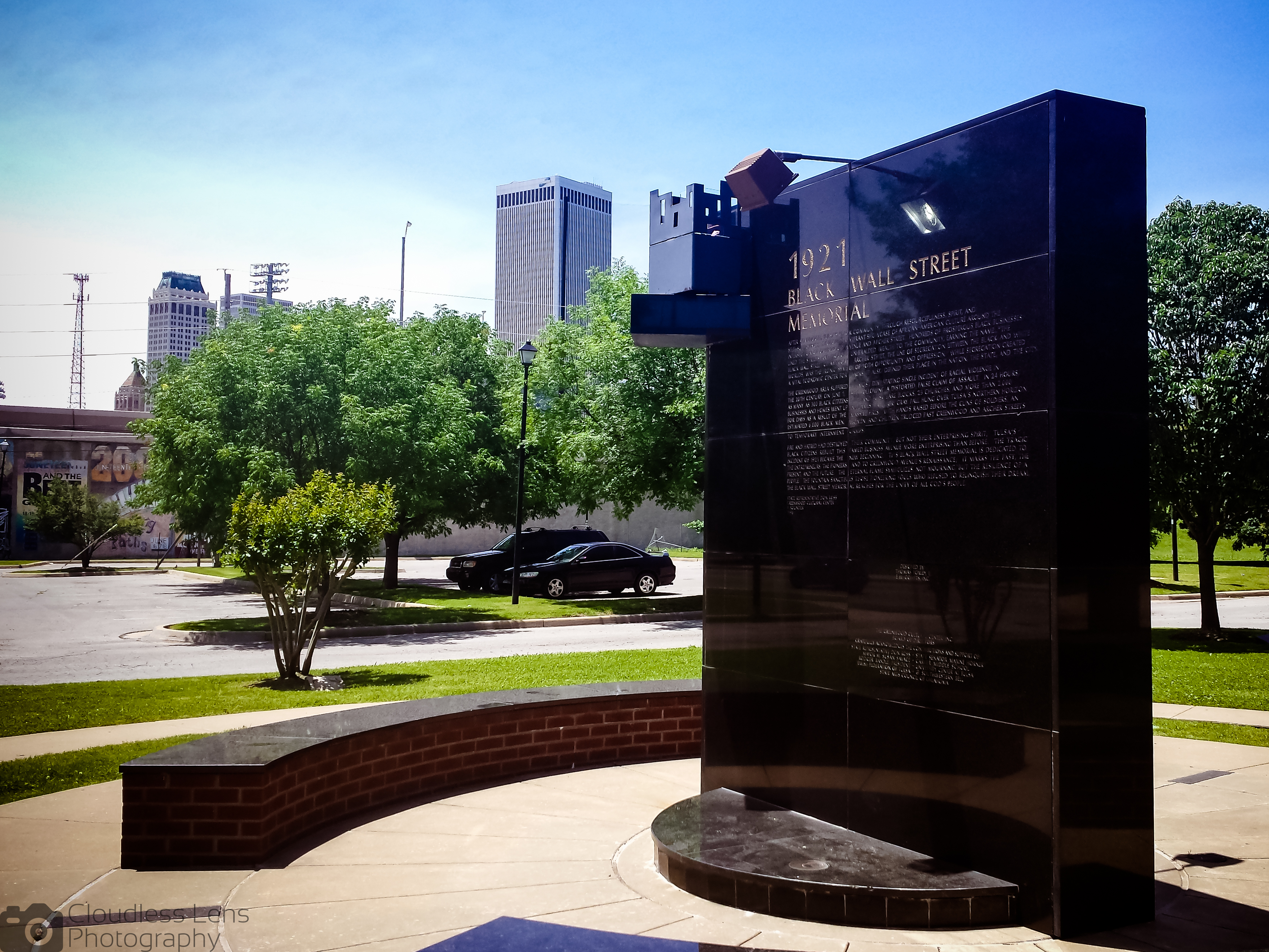I drove over to the Brady Theater and talked about the history of the building as well as the history of Tate Brady himself. Heading back to Main, I drove up to the Cain’s Ballroom and gave a similar basic lesson about the building and its history. The Bors love classic signs, and took great pleasure in taking some shots of their neon. Afterwards, we wove through the Greenwood district; I did not shy away from the history of the 1921 Race Riot or the ongoing impact it has on the city. There was a festival going on across from the Vernon Chapel AME Church, and we drove by slowly to take in some of the music and festivities.