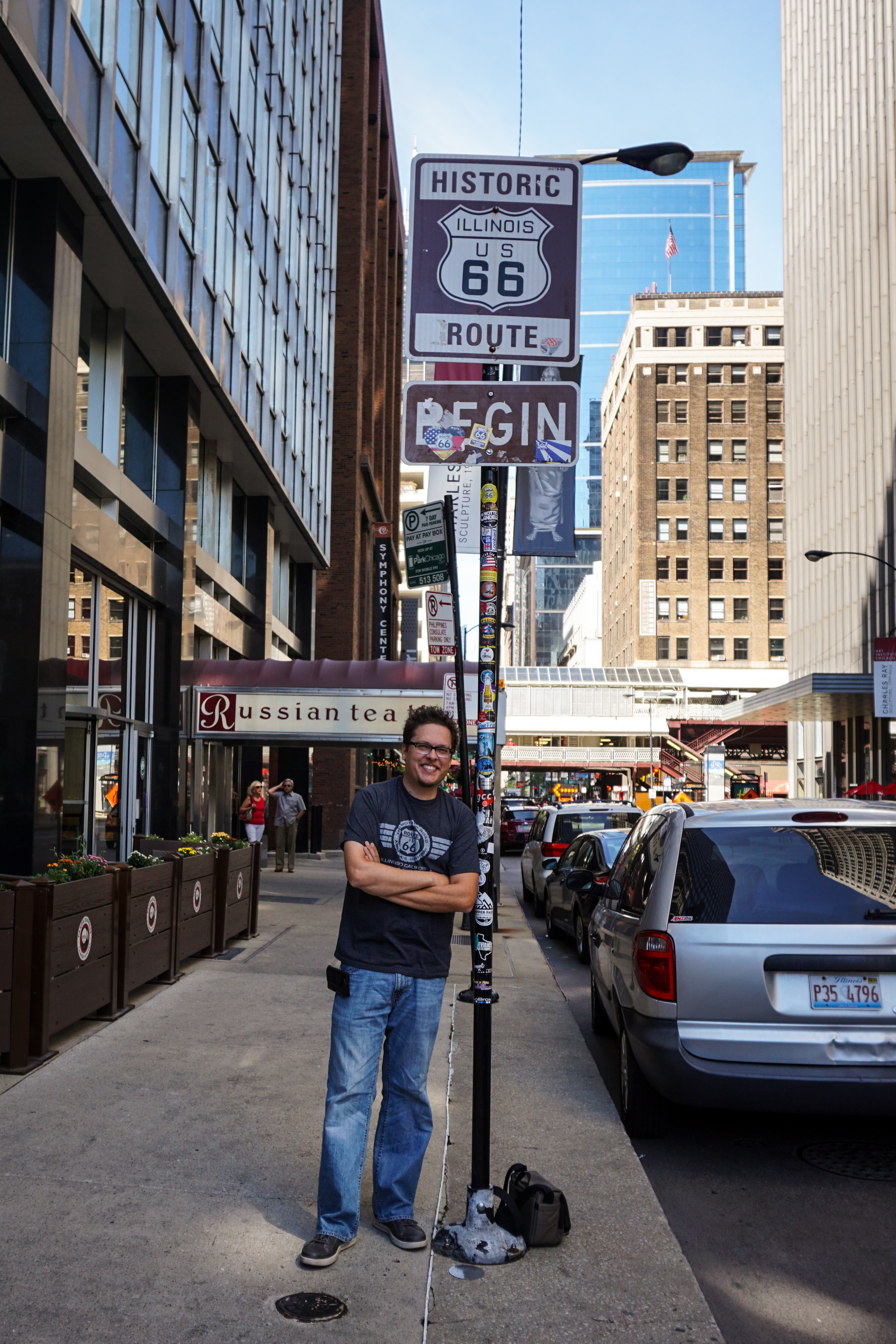 There’s a sign on the east end of the street, right by the Art Institute of Chicago, marking the start of Route 66. I smiled with childlike joy as Samantha took my photo at this iconic spot. At the same time, an old homeless man came up to us, introduced himself as Billy, and started questioning me about the history of the road. I’d heard about him before from my roadie friends, and smiled as he told me about the ‘secret’ Route 66 shield in the office window on the north side of the street as well as the reason why it’s called the Mother Road. He asked me if I knew when the Route started and was astonished that I was able to rattle off the exact date in 1926. We had a lovely conversation, at the end of which I had no qualms about giving him a few dollars. It’s all part of the experience.