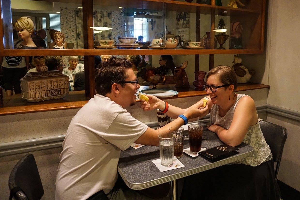 The Great Movie Ride was charming, but also quite aged. I loved seeing the old animatronics that recreated some of Hollywood’s greatest stories…but you can tell everything is nearly 30 years old. Even the cast members seemed to be staving off boredom for their roles in the attraction. For lunch, we ate at the 50s Prime Time Cafe, which is modeled after a 1950s household. The servers all act as Mom, complete with traditional dinnertime rules. I was admonished for having toys at the table (my cell phone) and listened as people around me were scolded for not eating their vegetables and having their elbows on the table. When my (delicious) fried chicken arrived, I made sure to transplant my corn cob to Samantha’s plate. It didn’t do me any good; I still got in trouble for not cleaning my plate as it was. It was a lot of food! Like our other experiences, we had a special honeymoon treat: a white cupcake, which our server split in half and had us feed to each other (all while complaining that she wasn’t invited to the wedding). It was a GREAT meal with a terrific atmosphere (all of the ribbing is in good fun; I normally can’t STAND places that play games with you as a customer) and a place that I hope still exists on my next visit.