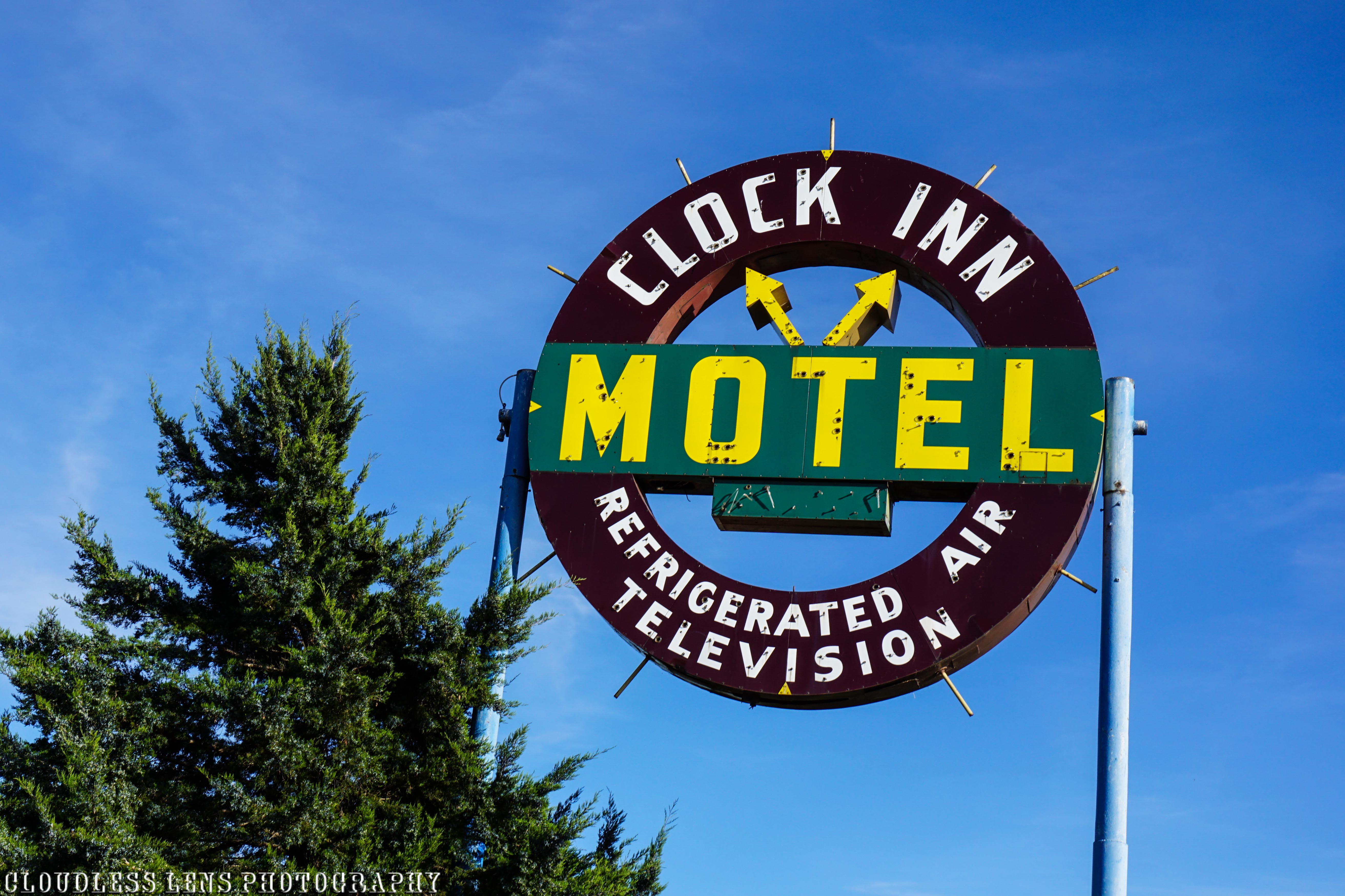 On the way back to Tulsa, I drove through the town of Apache (home to a few Victorian-style spires on main street, a la Guthrie) and Cement. The latter had a larger main street, but was devoid of life aside from a very overweight bearded man wearing ill-fitting overalls. I kept driving. I did stop, however, at an amazing place in Chickasha called the Muscle Car Ranch. It’s an RV Park, which normally isn’t my thing, but this RV Park is littered with old cars and salvaged signage. It was like wandering through a roadside amusement park! Among the relics I gleefully observed is a gigantic sign for the Clock Inn Motel, a long-gone Route 66 lodging in Oklahoma City. I’m going to have to do some serious research to figure out where some of the other signs came from. It was AWESOME!