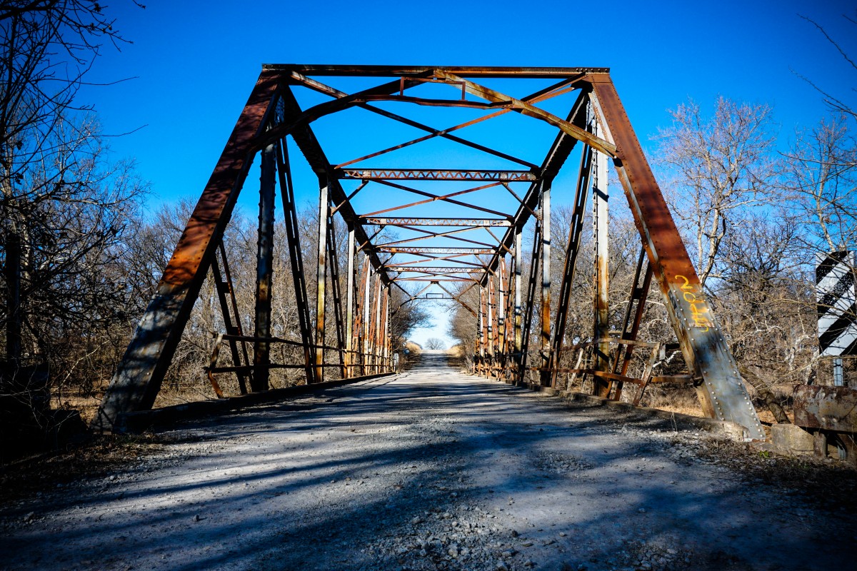 The last few towns I drove through were small and mostly uneventful occurrences. Braman to the north was much like Covington and was barely holding it together; Shidler to the southeast was a little better, but I noticed several buildings on the verge of collapse. The bright spot was a truss bridge I discovered just south of Shidler. I had the place to myself as I wandered a rural gravel road and not just one but TWO bridges; there was a closed pony truss that was an easy walk down a shrouded lane. Even though it was only 3:00 PM, I could feel the light starting to wane. I headed for home, weaving around dozens of wind-powered turbines on two-lane county roads.