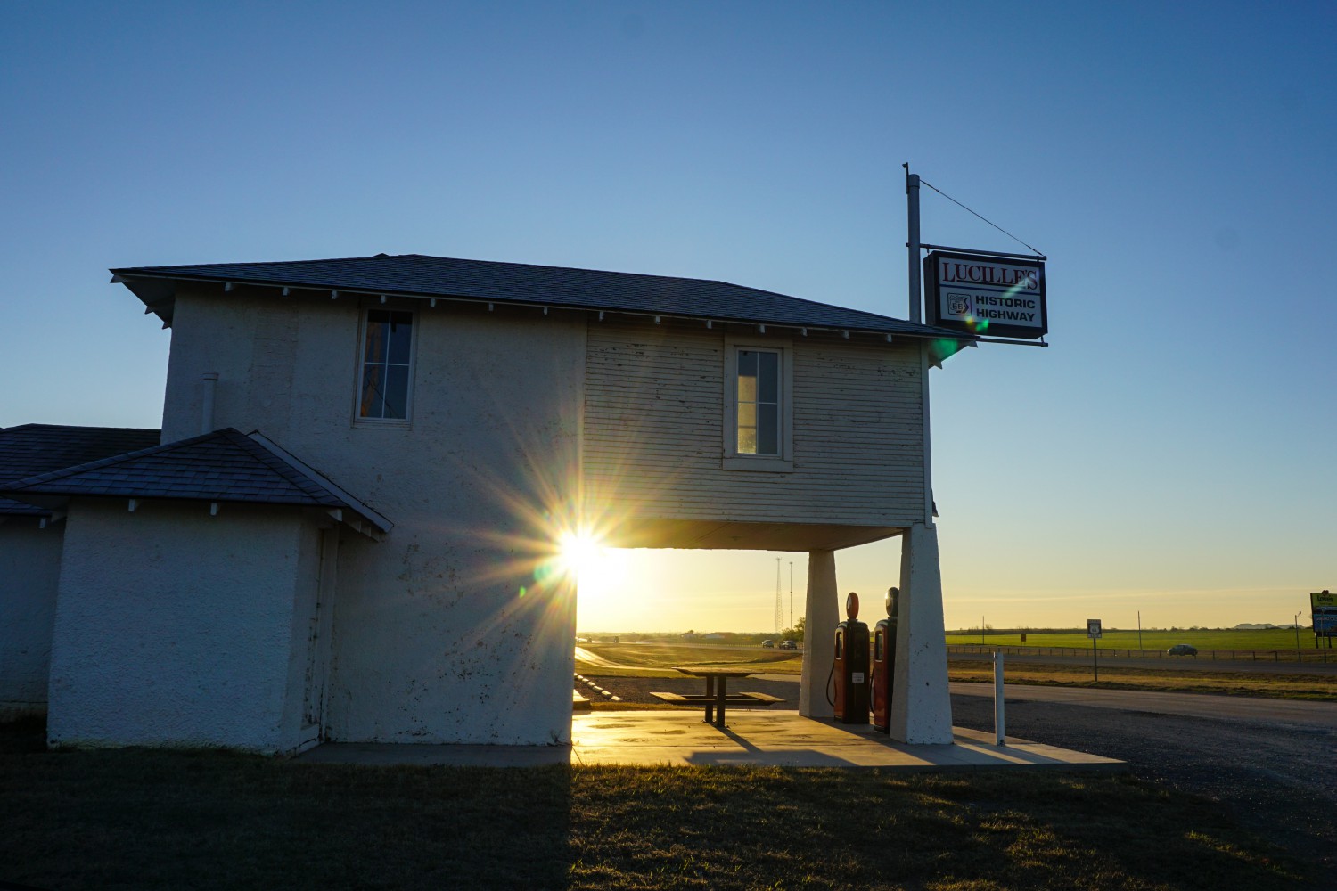 I awoke before sunrise, eager to get on the road…only to be greeted with a frosty windshield! It was below freezing, much to my surprise; I had only glanced at the weather before I left and saw sunshine and mild afternoon temperatures. Once I’d warmed the car (and myself) up, I hopped on old Route 66 and headed west. I timed it perfectly so that I arrived at the Canadian River bridge at sunrise. It was gloriously absent of motorists; I had the 38-truss span to myself. By the time I reached Lucille’s Station in Hydro, the sun had risen completely, bathing the landscape in a warm orange glow. There’s something special about the early hours of a weekend morning, especially when I’m on the road somewhere. It’s my favorite part of the day. And that’s not just because it also comes with breakfast food. That’s an added bonus!