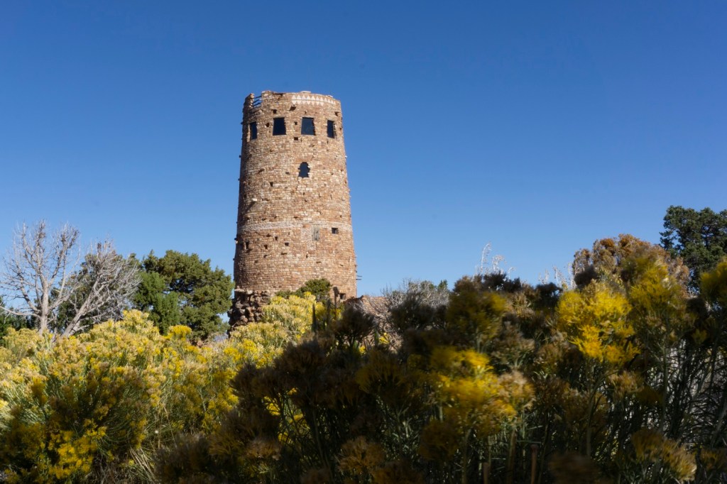 Mom was content to stay in the car as I explored the Desert View Watchtower near the eastern edge of the park. It’s four stories tall and looks much older than it is. The tower was built in 1932, one of several structures designed by Mary Colter for the park. It provides a beautiful view which includes the eastern edge of the canyon and a vast expanse of desert beyond the rim. I wondered what the pioneers felt when the saw this landscape for the first time, unprepared for the indescribable splendor.