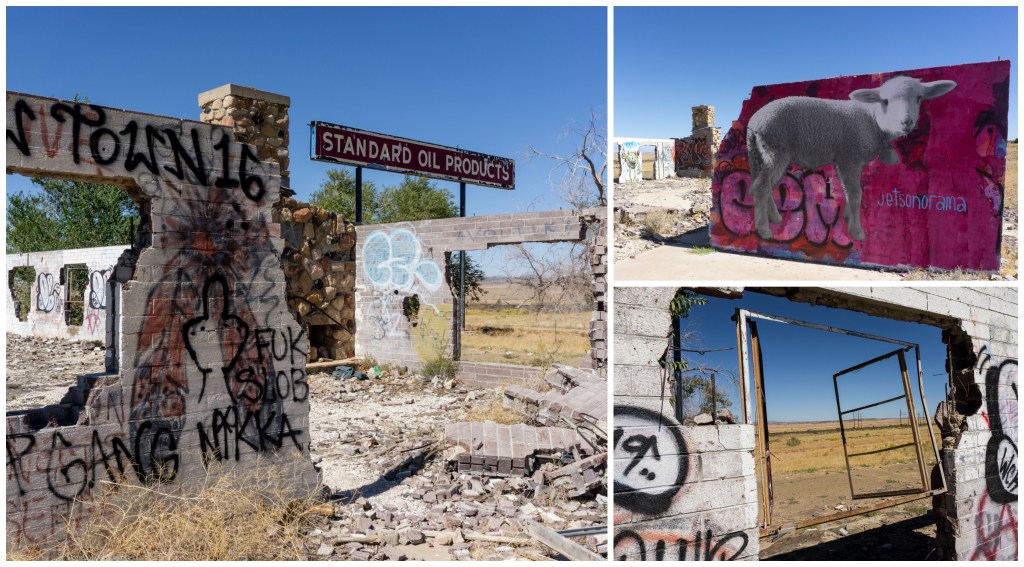Between the Canyon and the Valley, we came across an old Standard Oil service station. I’d seen this station once before, back in 2013 when I was first starting to find my artistic eye. This time, I lingered a while and took photos of the graffiti on the crumbling walls. The old stone fireplace had a small block of text stenciled on one of the rocks. “Let’s be better humans,” it suggested. Another bit of writing said, “Remember who you are…” with Native America scrawled beneath it. It’s a unique spot that won’t last forever. But, then again, what does?