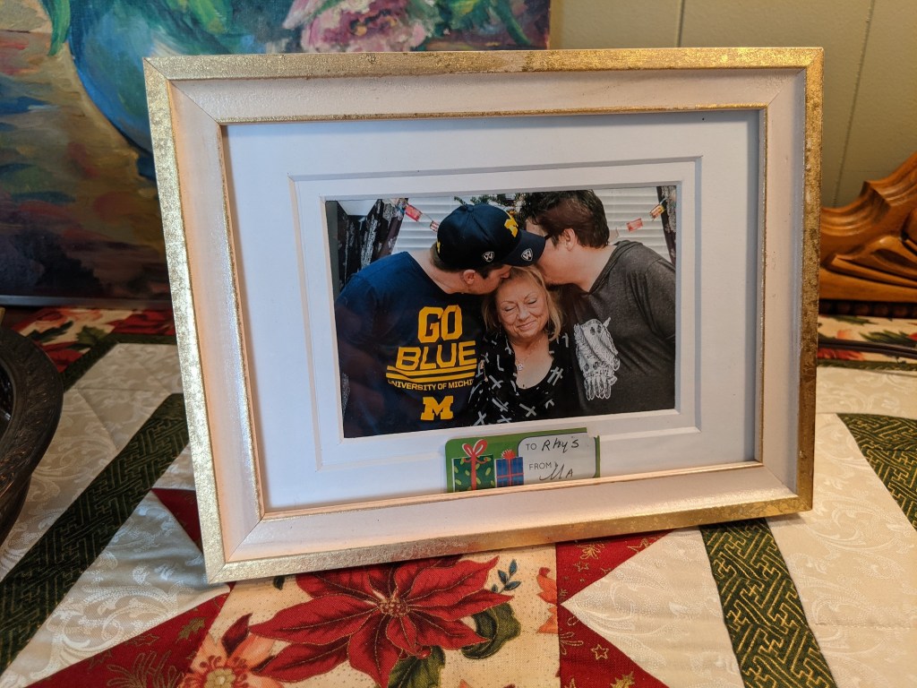 Every year, Samantha pleads with me to save bows and boxes as we can reuse them in the future. Because of her insistence, she presented me with a handwritten gift tag from Mom that I otherwise would’ve discarded when it wasn’t as important. It means so much to me. Yet another example of how she has made this year bearable.
