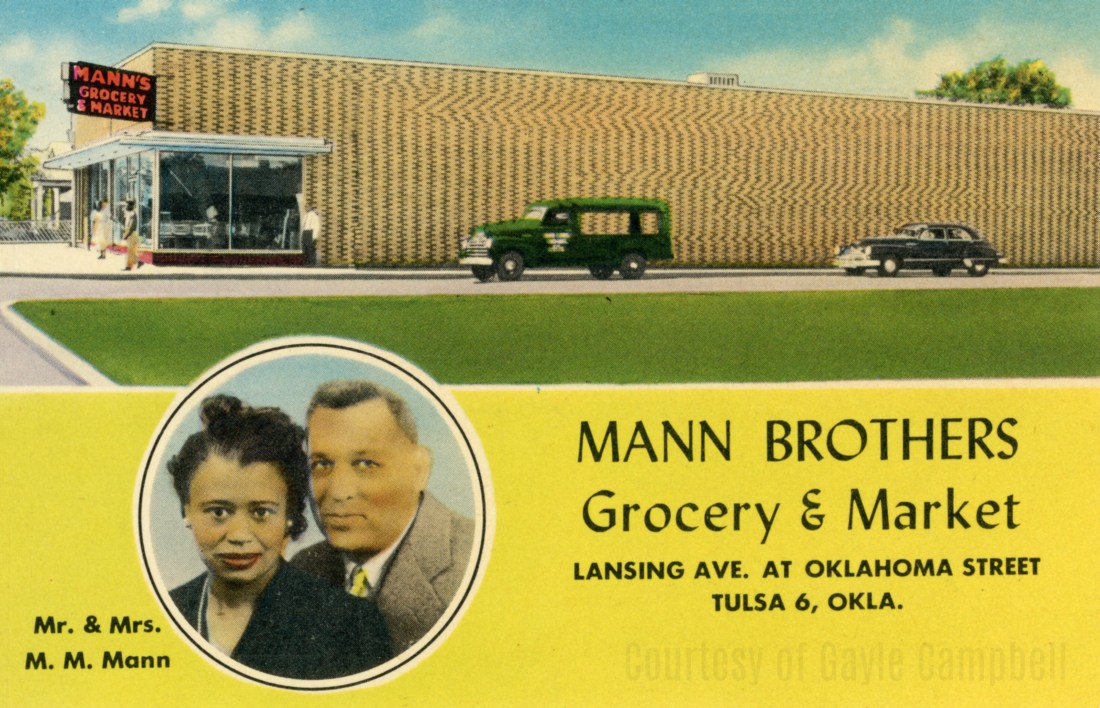 I love it when I come across an unusual postcard; it always encourages me to look a little closer. Sometimes, it is tied to quite a story. Such as this postcard for a grocery store in north Tulsa: I'd never seen a postcard for a grocery store before. The cars in the image are quite … Continue reading Mann’s Grocery