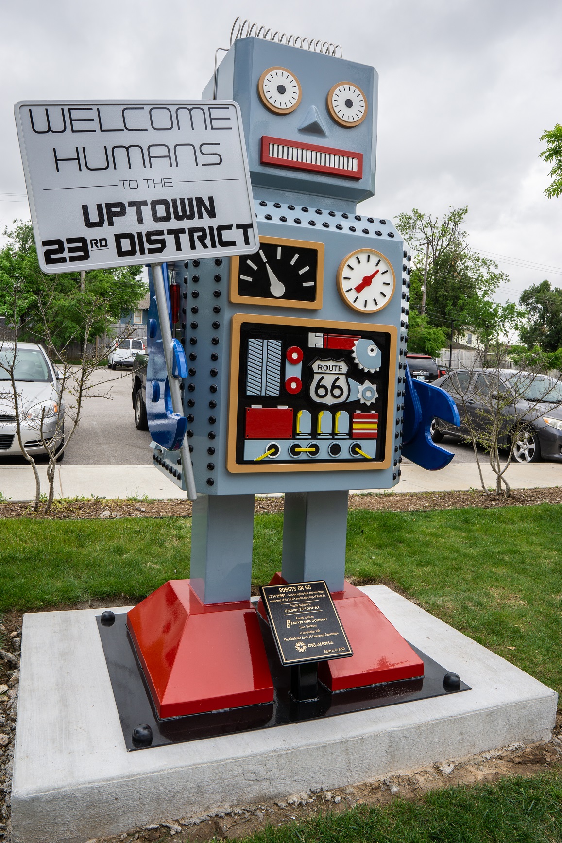 One mile east of the Asian District is the area’s newest resident: an eight-foot-tall robot statue! This is the second metal robot installed on Oklahoma’s Route 66 (the first stands proudly at Buck Atom’s Cosmic Curios in Tulsa). They are both based on classic tin toy robots and provide a quirky photo op. Oklahoma Tourism and the Oklahoma Route 66 Centennial Commission hopes that more towns along the road invest in installing one of their own to add another “Only in Oklahoma” series of attractions.
