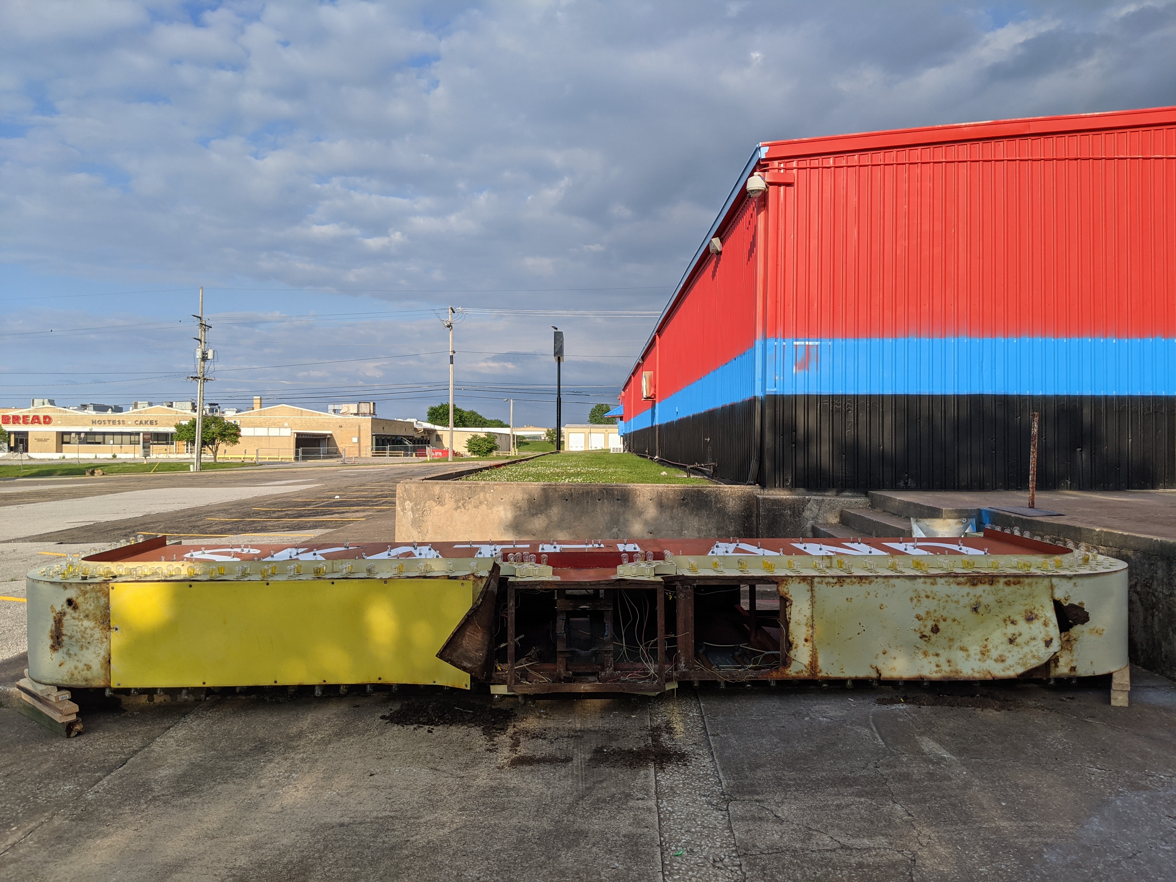 Out of the blue, I received a message from the Enlow family letting me know that Skateland had sold. The new owners weren’t interested in the large neon sign, which I’d long hoped would take advantage of the local Route 66 Neon Sign Grant Program as it hadn’t been lit in years. The challenge: whoever wanted the sign had to act fast as it had already been taken down and placed beside the dumpster.