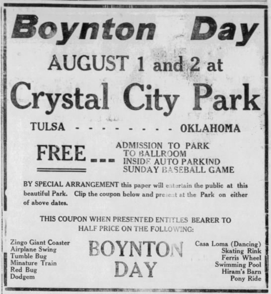 A lesser known West Tulsa Park was known as Sun Set Plunge Park. It was located just south of the old Texaco refinery around what was West 32nd Street. It also had a large dance hall, rides and a rollercoaster called the Jack Rabbit. Bates line mentions it and I found numerous articles and adds in both the World and Tribune. Unlike Electric or Chrystal City this park has all been but forgotten.