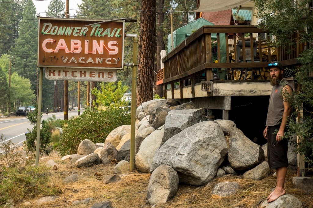 The winding road through the mountains and the cozy drive alongside Donner Lake were both very enjoyable, in great contrast to that tragic consequence of Manifest Destiny in 1846. The area is quite a recreational hub now, complete with roadside chalets and cabin rentals. A neon sign caught my attention and I pulled over to take a photo. I didn’t see the bearded man lounging on the patio and he surprised me with a wave. He asked me if I’d like to have the sign turned on…which, yes, of course I did! He plugged it in and voila – the glass tubes lit right up. He told me the owner had wanted to scrap the sign, but he had insisted it remain. “It’s vintage!” he exclaimed and said that it’s very effective when lit during the busy season; people are just sitting in traffic along the two-lane road and it offers a welcome respite. I thanked him for his efforts before heading down the road.