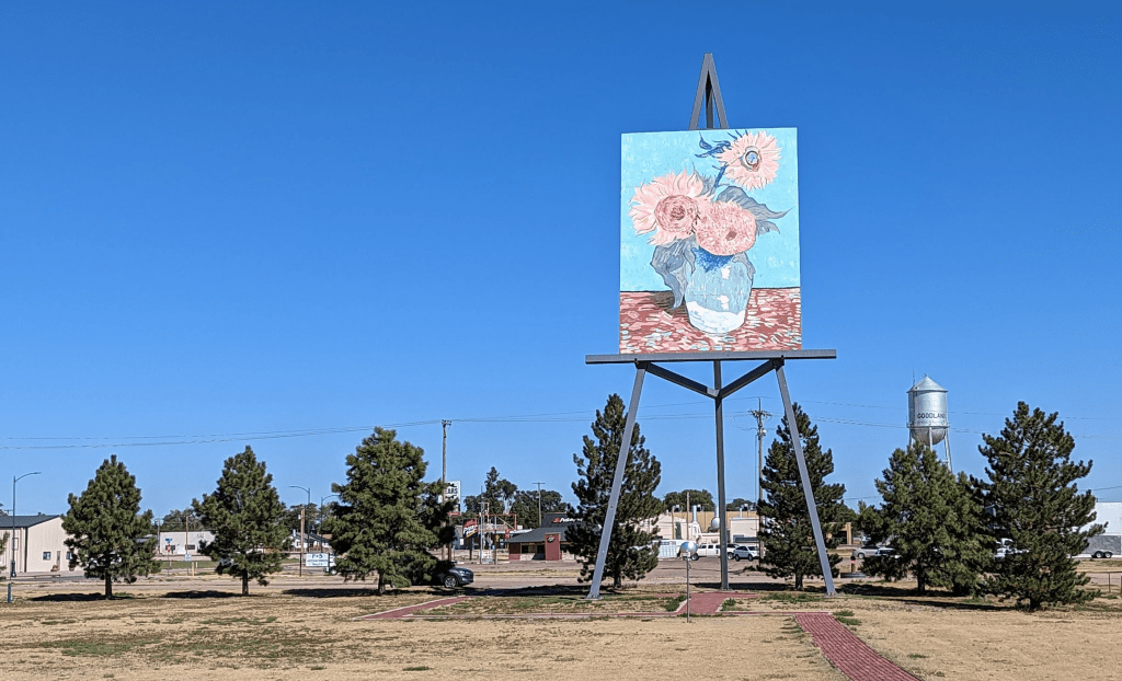 Our last day took us into Kansas, where we stopped to see the World’s Largest Easel sporting a Van Gogh sunflower painting. The town of Goodland is also home to an absolutely stunning Art Deco building that once housed the local telephone company switching operation. You never know what you’ll see on these small town main streets!