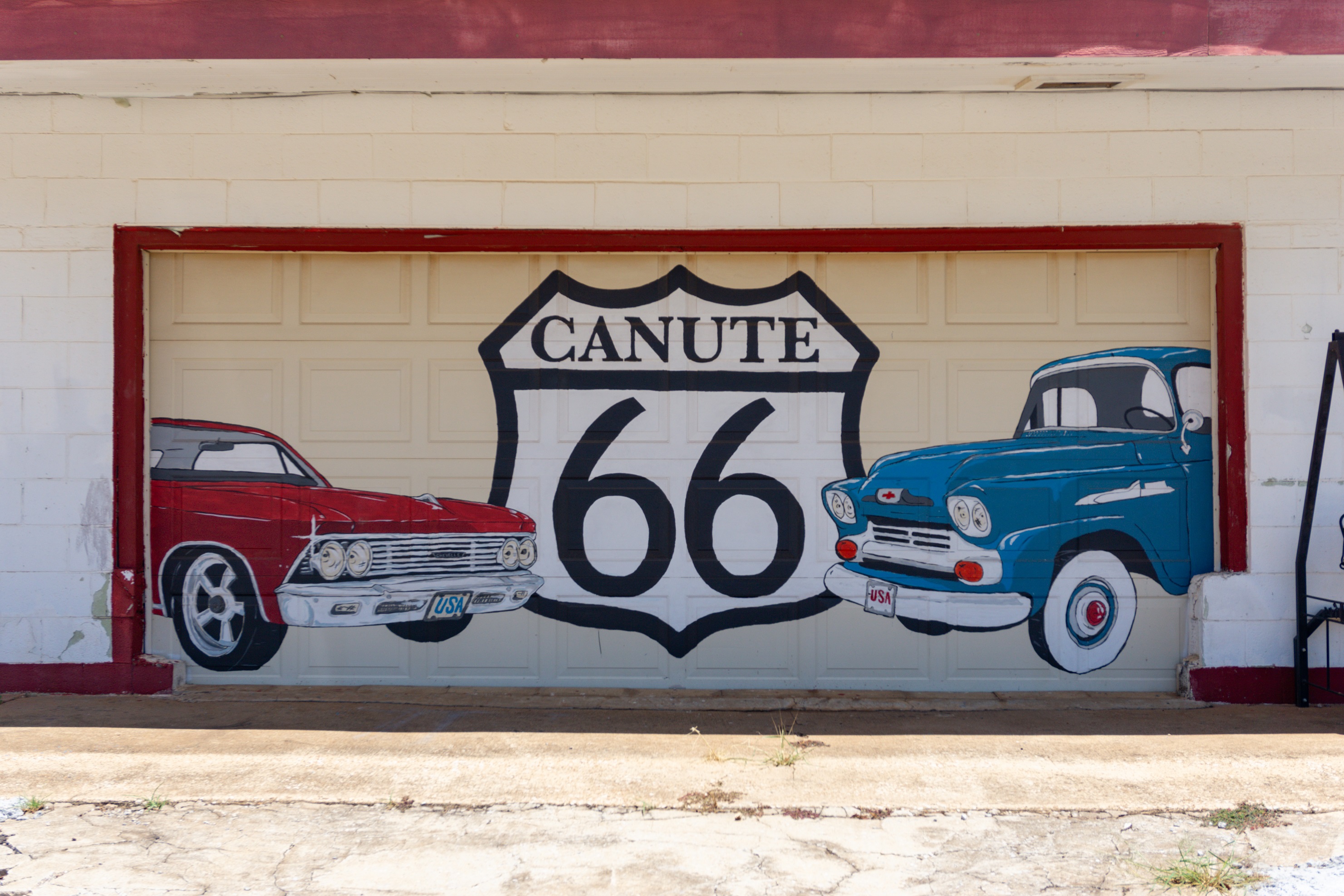 Canute, situated between Elk City and Clinton, clocked in shy of 500 people at the last census. But there’s a passionate movement to make sure the Centennial of Route 66 doesn’t pass them by like I-40 did. They’ve been doing what they can: sprucing up abandoned storefronts, painting murals, creating a little photo op scavenger hunt. Seriously, they do more for the Route 66 traveler than some towns ten times their size. It’s remarkable! They graciously offered to host our July Board Meeting in their community center.