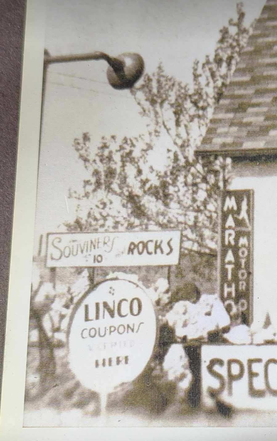 Jim passed away in 1983 but his sons continued to operate the station well into the 21st Century. When the station was eventually sold, the rock collection scattered, too. The building is still there. It was a motorcycle shop for a while but today, in a funny bit of continuity, the business there sells granite countertops.