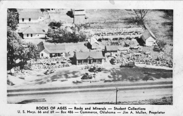 In addition to selling gasoline, fixing tires, and working on automobiles Jim Mullens sold rocks from the nearby mines to travelers. The centerpiece of the collection, according to a story written by Dave Hicks, was a “3 by 4 foot chunk of calcite crystal covered rock, the best of its kind in the tri-state area.” The story also mentions a 300 pound mass of galena lead crystals brought to the shop by a miner that had excavated it. The shop featured all manner of interesting minerals and rocks.