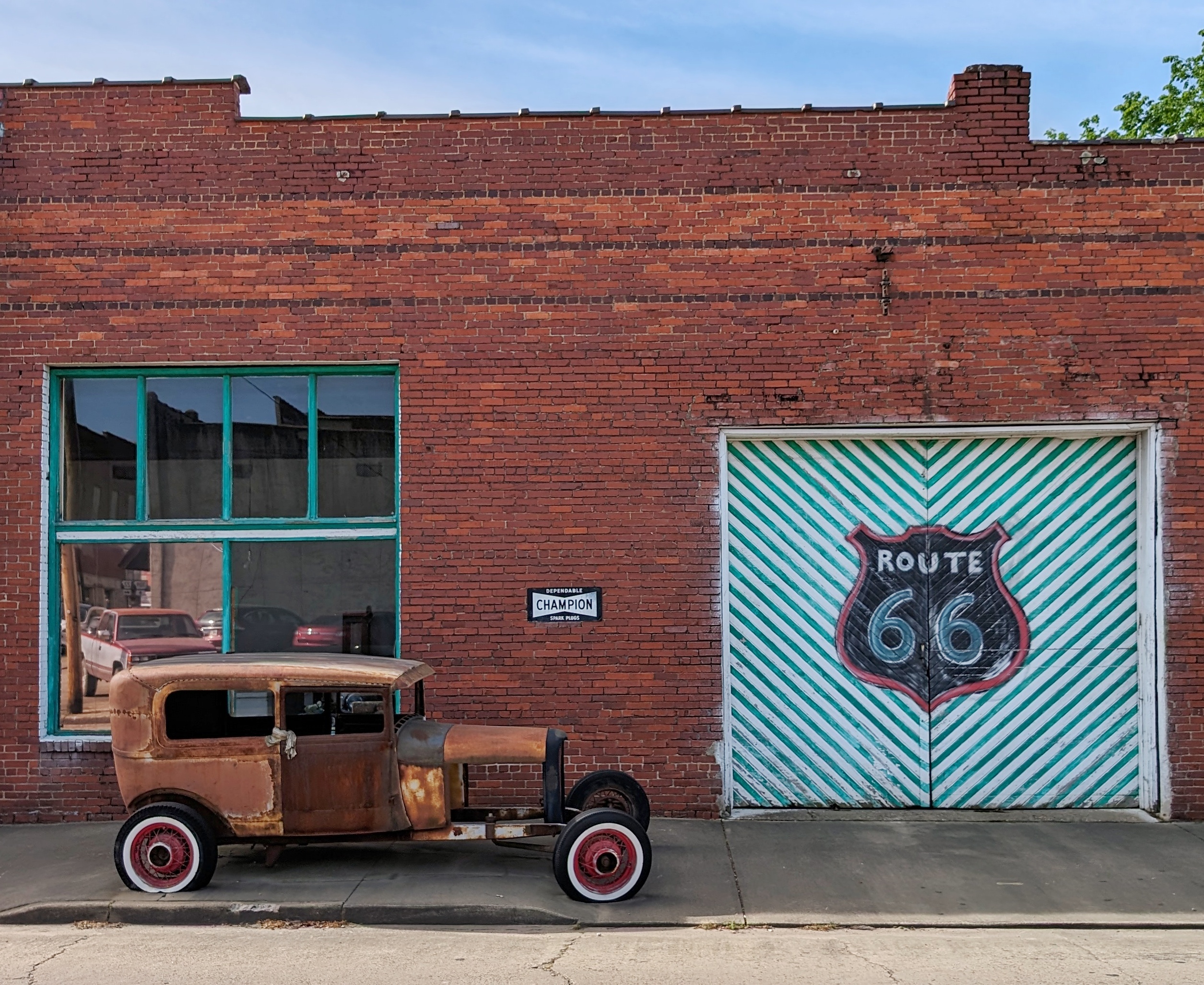 A Route 66 mural. Here, in a small Arkansas town, over 150 miles from the Mother Road. What was it doing here? Sam could tell it had sent my brain into overdrive. “Do you want to stop here?” she asked. I didn’t even think before saying yes. It was a sign! We diverted into a neighborhood and u-turned back to the town square, where an Eclipse Festival was in full swing. We found street parking easily and had hours to spare. What luck!