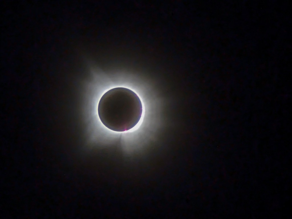 It’s hard to describe the difference, even between that last partial moment and totality. The light takes on an entirely different quality. You can take off your eclipse glasses and look at the halo with your own eyes…and although I’ve seen pictures of a total eclipse, there’s nothing, NOTHING, like seeing it live. I grasped Samantha’s shoulder in a state of shocked awe. We were speechless for a moment, then all of downtown Paris let up a huge cheer. For three-and-a-half minutes, all of us were united in wonder.