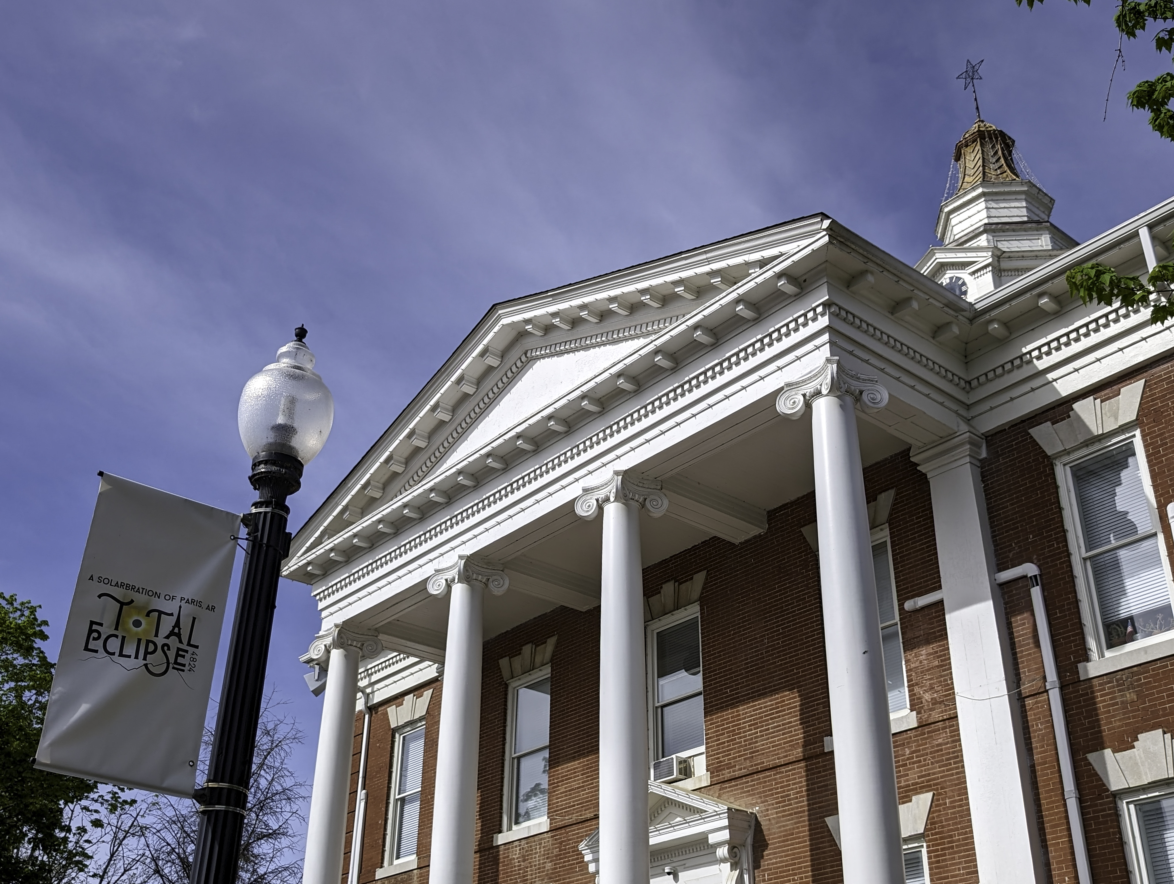 Before that timer ran out, I skittered across the street to take a few photos. During totality, you don’t need a special filter and although all I had was my cell phone, I figured I had nothing to lose. We’d parked across from an old sign advertising The Paris Express, the local newspaper dating back to 1880. I couldn’t tell if they were still operating, but I wondered how many similar celestial events their reporters had covered over nearly a century-and-a-half of service.