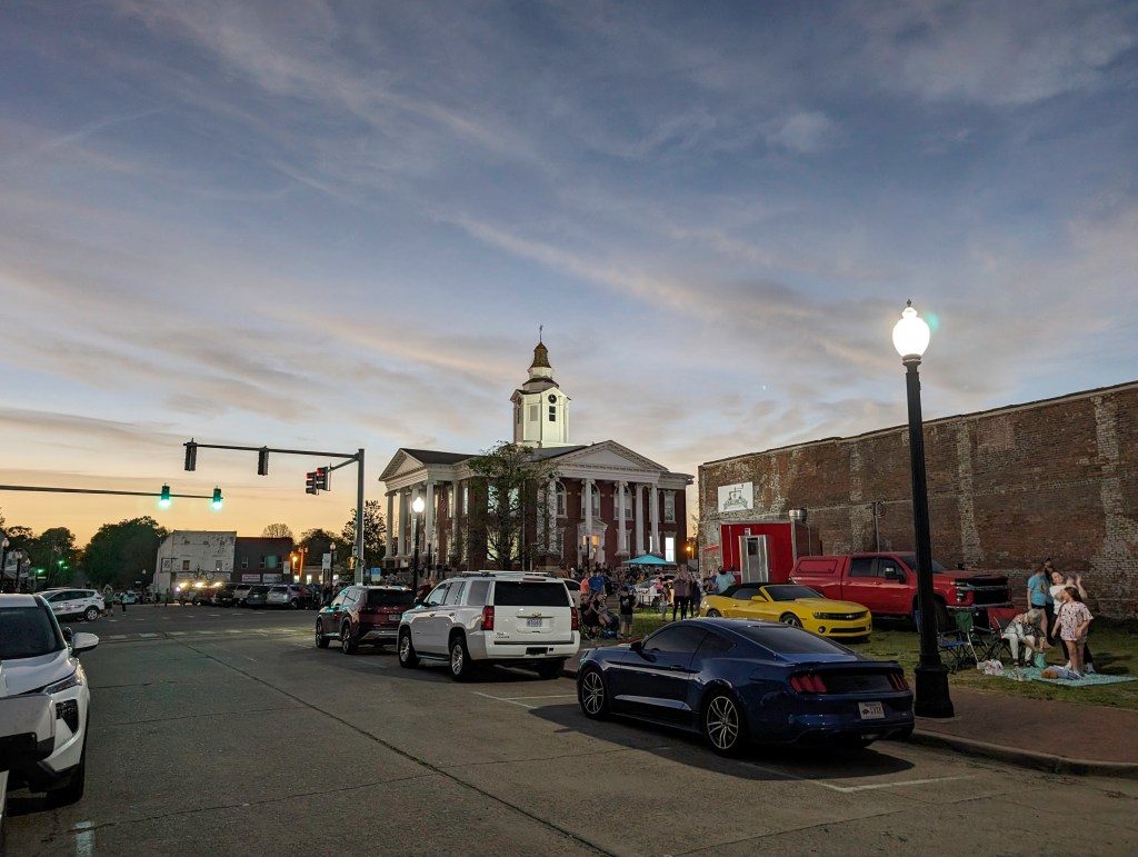 Another cheer went up as totality ended and the moon continued its journey across the sky. Music started back up and the festival resumed. We took one more circuit around the square before getting in the car and heading out. The traffic back to Tulsa was much heavier and it took almost an extra hour to get back home. But it was very worth it…and something I will never forget.
