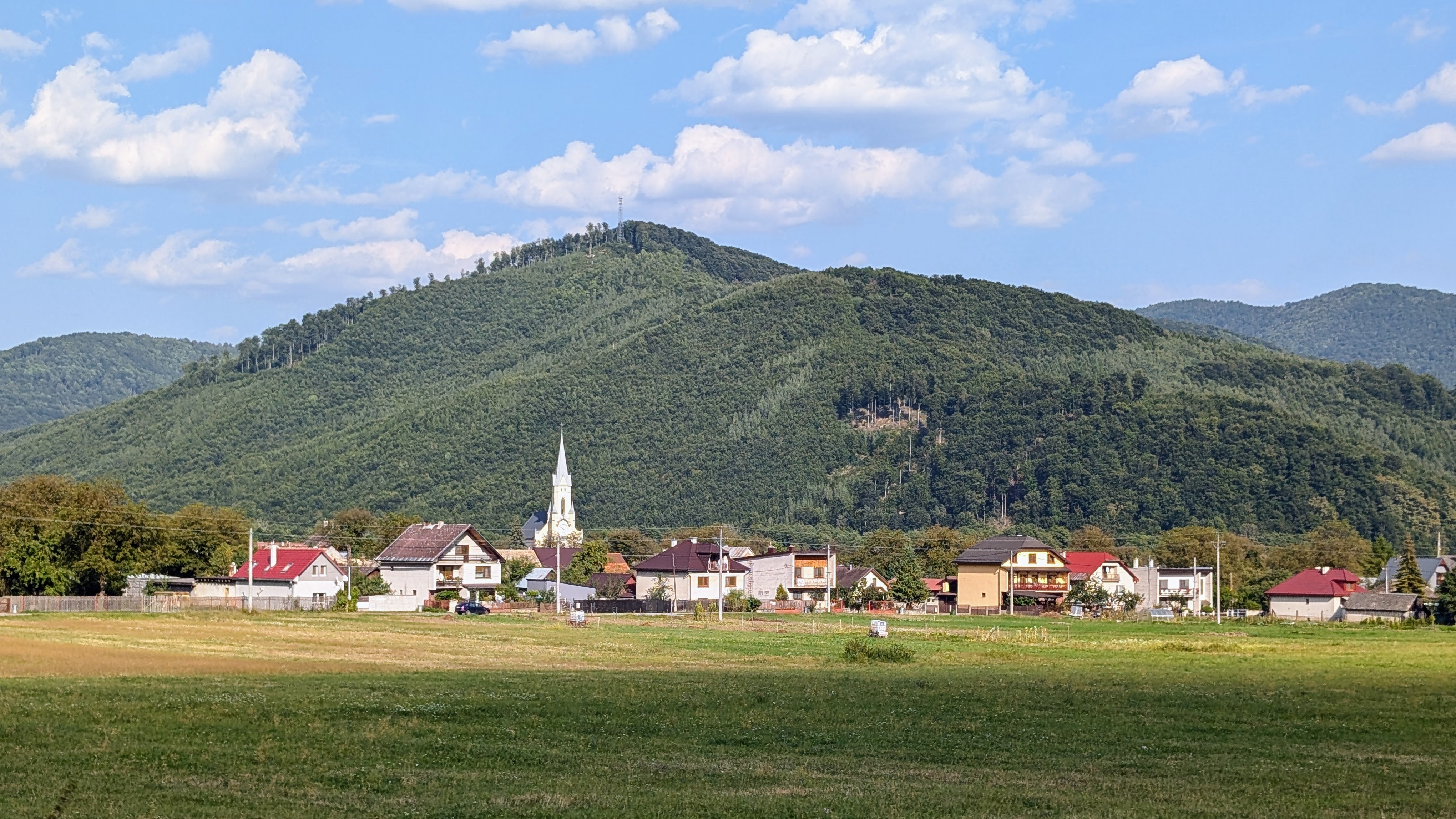 After a relaxing night’s sleep at Marián’s farmhouse, we took our time before hitting the road. After breakfast, we took an hour walk around the countryside. There’s a “right to roam” understanding in Slovakia that means people are generally able to wander unfenced lands without issue. It felt very Lord of the Rings to just walk across the land for a bit, past cornfields and abandoned farmhouses, across creeks, and through meadows. There was even a bus stop on the country road way out there, though it only sees one transport in the morning, one in the evening. “Not very useful,” Marián said…but coming from a land with limited public transportation options, I was still impressed.