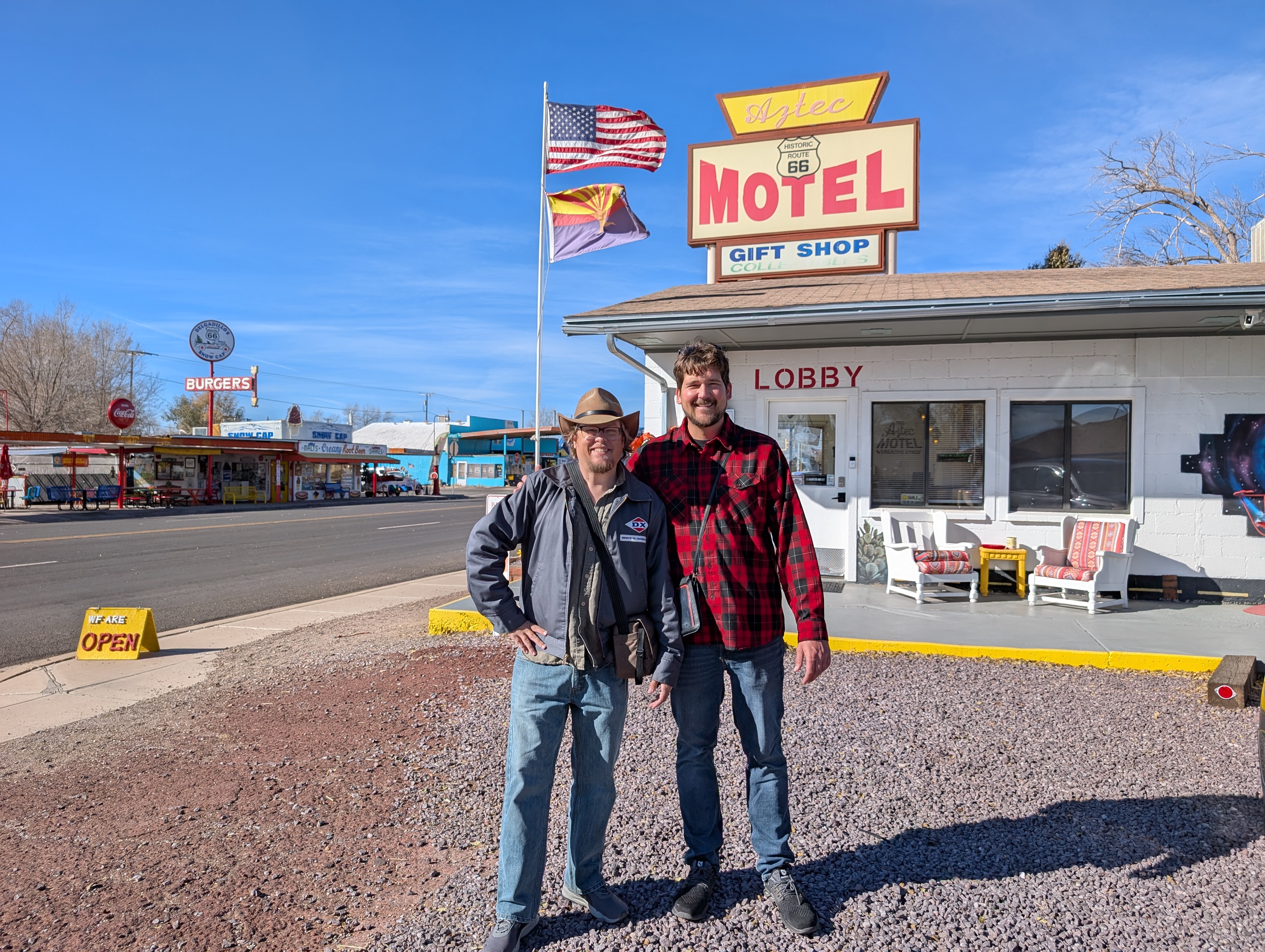 Thanks to a tip from Nikki Terlesky, the head of the Arizona Association, I walked across the street to the Aztec Motel & Creative Space to check it out. The Aztec dates back to 1915 but most of the existing motel is from a 1950s-era expansion. A few years ago, Sebastiaan de Boorder fell in love with the place and bought it with his wife Anna Marie Gonzalez. They’ve renovated the motel and turned the original adobe structure in the back into a creative community space. Locals use it for gatherings and travelers use it to take their time and relax a bit in a comfortable setting. It’s a wonderful reimagining of what a vintage motel can be; I really enjoyed meeting Sebastiaan and learning more about their vision.