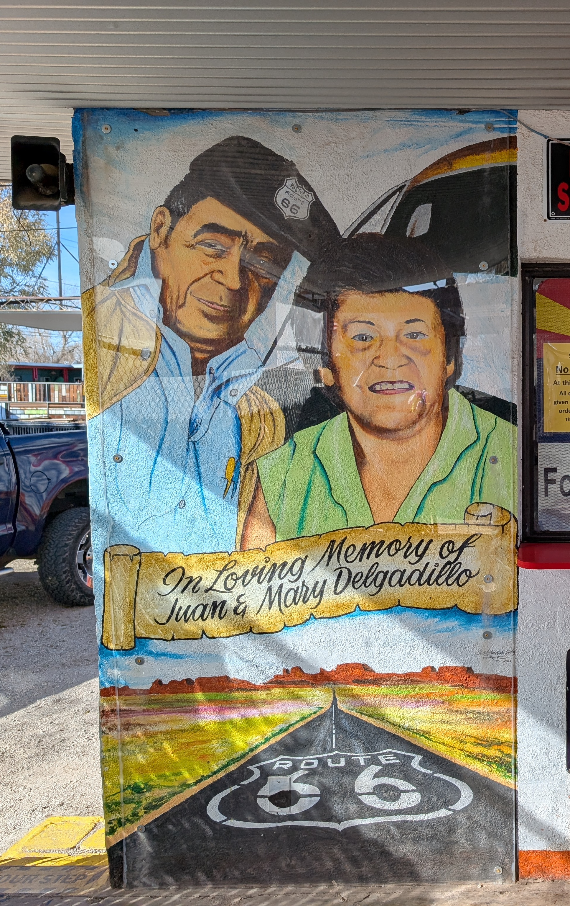 What a delight! I’d met Angel once before, back in 2016 when I was just getting into Route 66 advocacy. I didn’t ask to see him on my visit because, c’mon, the guy has earned his retirement. But I’d be lying if I wasn’t giddy at the opportunity to have a substantive visit with the man, especially with much of his family present. The two-block walk didn’t take long, though it felt longer, and then we were standing in front of an unassuming stucco structure next to the train tracks. Not only was Angel there, but so was another one of his sons, Angel Jr., who had just flown in for the holiday.